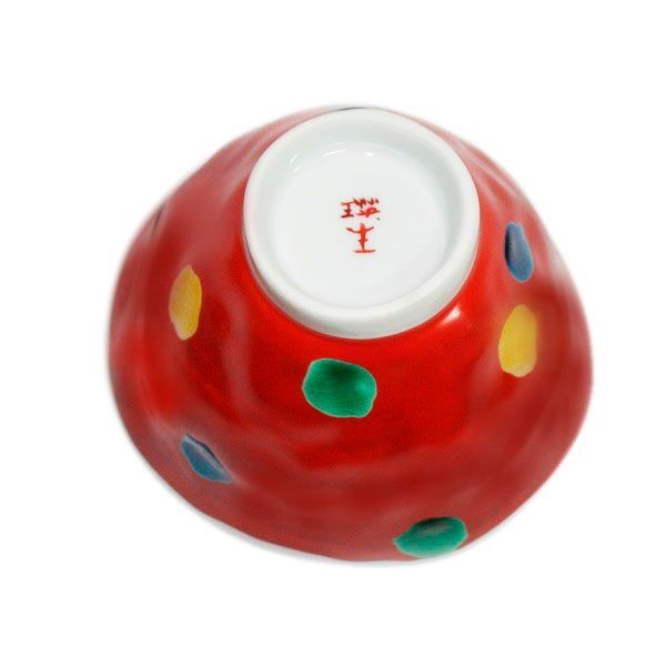 This is a rice bowl in the popular hand-rolled polka dot design made by Kutani Bitoen. Polka dots and stripes are said to be eternal fashion, and not only women but also men often purchase this popular rice bowl with red rolled polka dot pattern for their own use.
