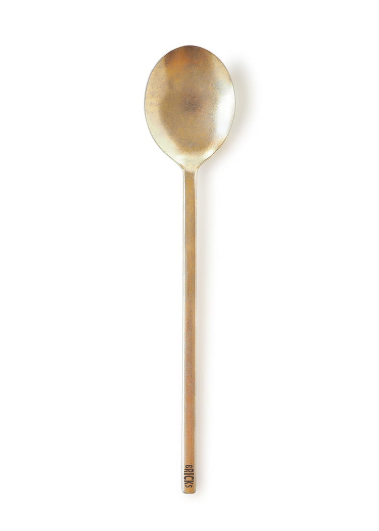We are committed to a simple and warm design with minimal waste in the hope of creating products that are not influenced by trends and can be handed down from one generation to the next. BRICKS is a product that will be loved for a long time in your daily life. Spoon and fork inspired by the Korean spoon Sukkara. The spoon is shallow, making it easy to scoop and eat. The forks have an unusual design, with the middle two forks slightly lower than the rest. Both cutlery pieces are well-balanced in terms of the length of the handle and the tips, making them easy to use. The stylish form and damaged surface finish create a cool table look.