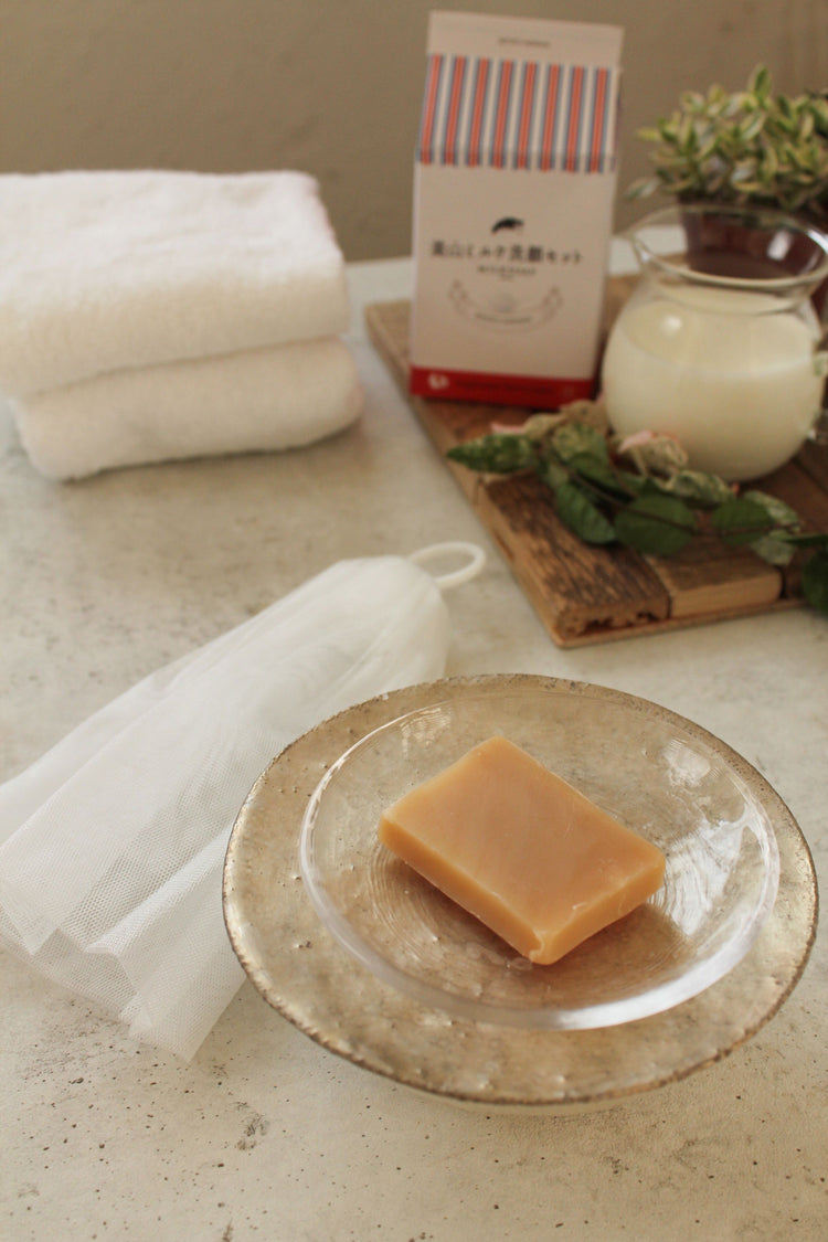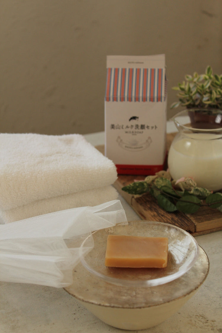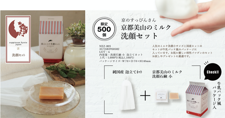 [The popular milk face wash set in a small size and a net made in Japan are now available in a milk carton style package.