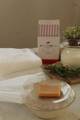 Kyo-no-Sappin-san is a domestic additive-free cosmetic product made to suit Japanese skin. All ingredients used in Kyo-no-Sappin-san are of natural origin.