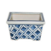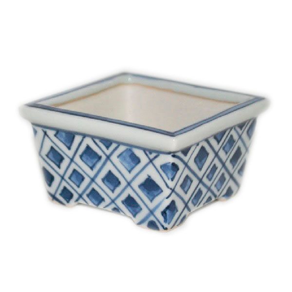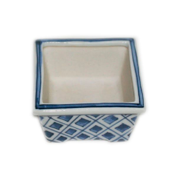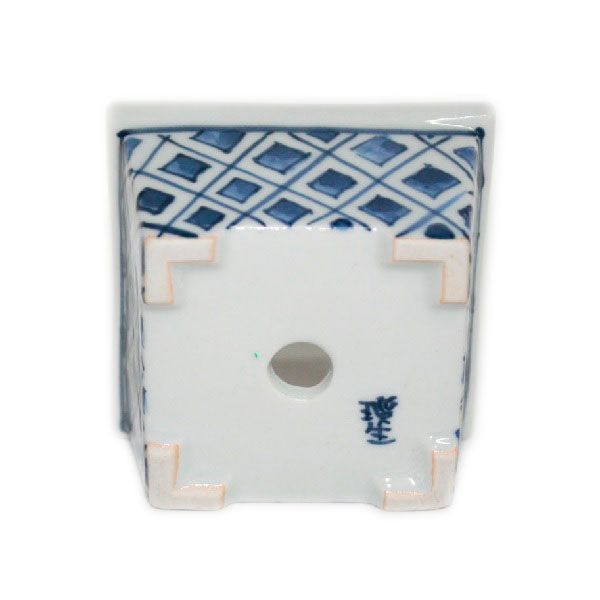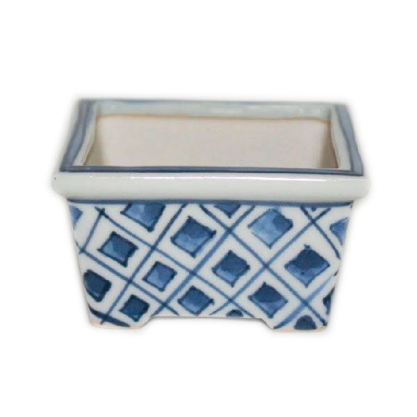 This is a hand-painted flowerpot and bonsai pot by Kutani ware. It is the size you can hold in your hand. A lattice pattern was drawn by dyeing. It is a simple and elegant bonsai pot.