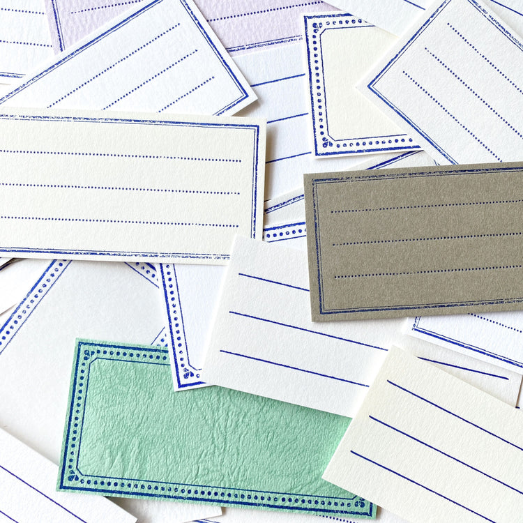 It would be a waste to throw away leftover letterpress paper! That's why we made a message card. The box has a monogram pattern that resembles a typeface, allowing you to fully enjoy the unevenness of the letterpress. Inside are about 150 cards with antique-style designs. The paper has a slightly different texture and writing feel, so please enjoy it as well as the letterpress texture.