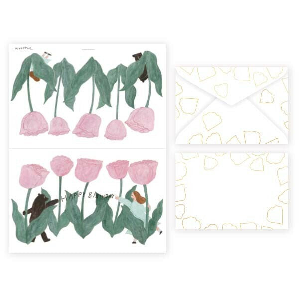 A warm and charming folded birthday card designed by the illustrator duo Necktie. The card features raised embossing for a playful texture.