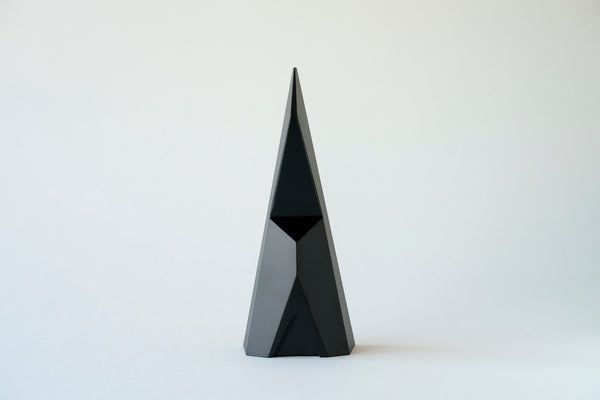 Kuro" is inspired by the long shadows cast by light on a silvery white world, and the contrast between light and shadow. The saw marks left when carving the wood are kept as much as possible, and the edge of the form is finished with a slightly glossy coating to make it stand out.
