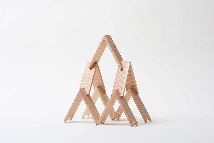 A simple triangular shape [tsumiki]. The architectural elements of the wooden blocks can be used to create various interior objects depending on the way they are piled up.
