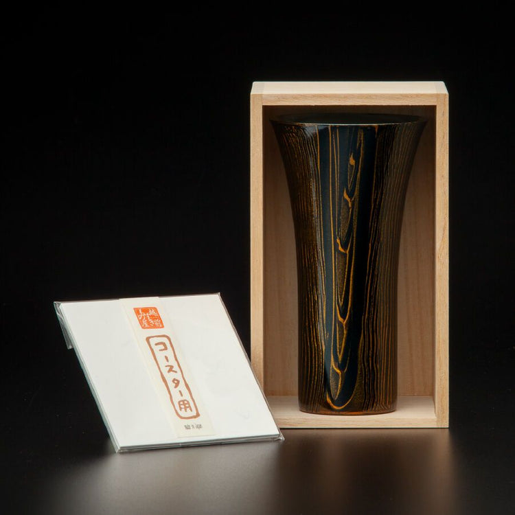 All Urushi-Polished Cups, except for the "Red Fuji with Cranes" series, are accompanied by coasters made of Echizen Washi, a traditional craft of Echizen City, Fukui Prefecture.