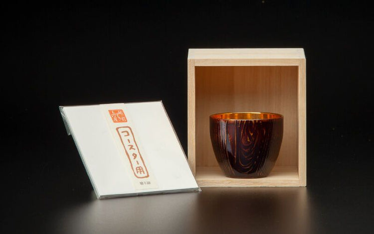 All of the Urushi-Polished Cups, with the exception of the "Red Fuji with Crane" series, are accompanied by coasters made of Echizen Washi, a traditional craft of Echizen City, Fukui Prefecture.