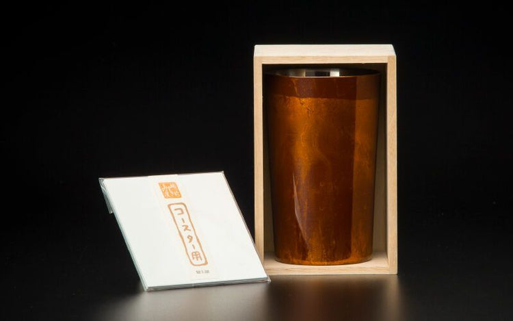 This cup has a stainless steel body finished with Tsubame-Sanjo polishing techniques and lacquered by Yamanaka Lacquerware, a traditional craft.