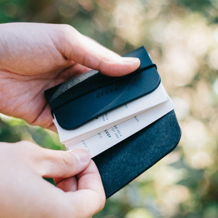 A business card case with a simple structure in which business cards are wrapped in leather. You can quickly take out business cards, and it can hold more than 30 business cards. Recommended for those who frequently take out business cards.