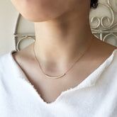 A simple necklace with lustrous thin tubes that has just the right amount of presence.