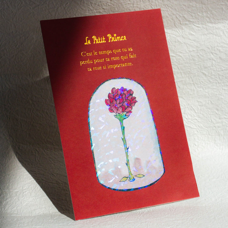 This foil-stamped postcard is based on the theme of the little prince's great adventure.