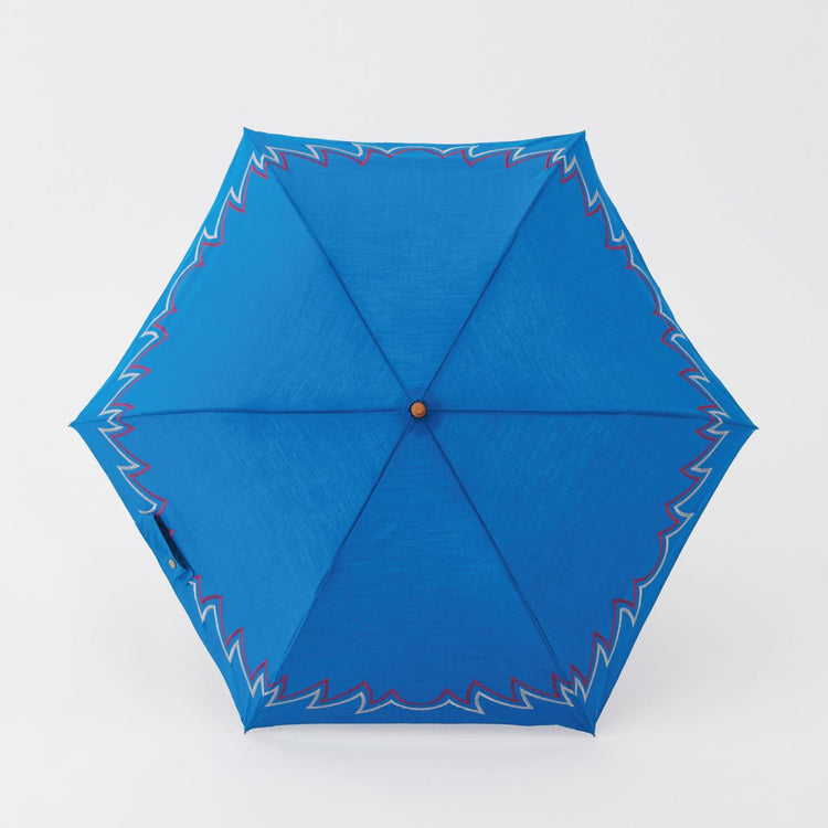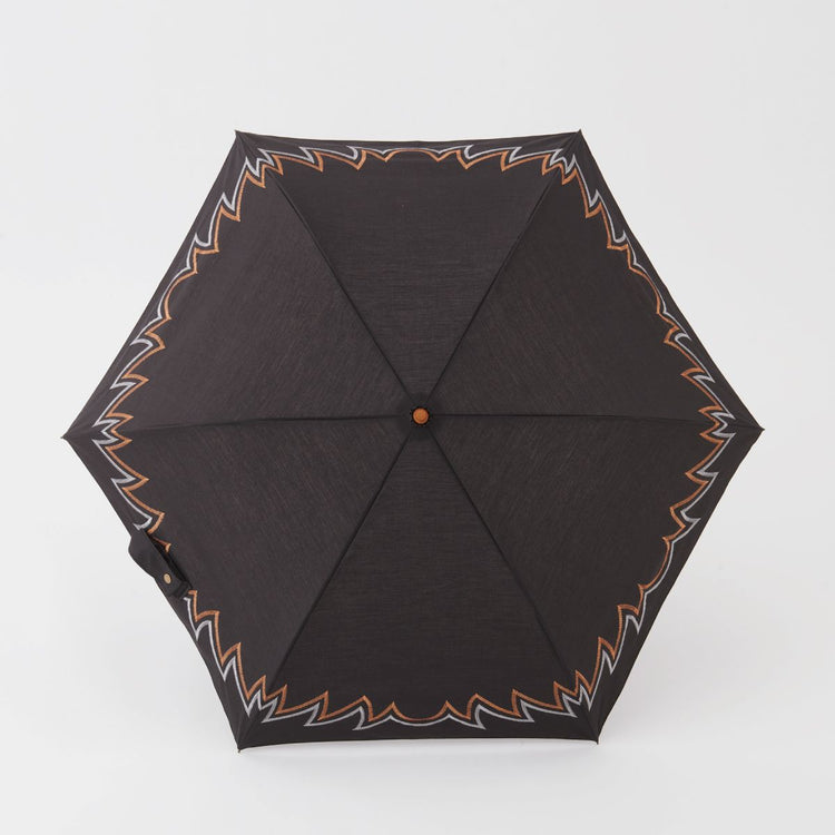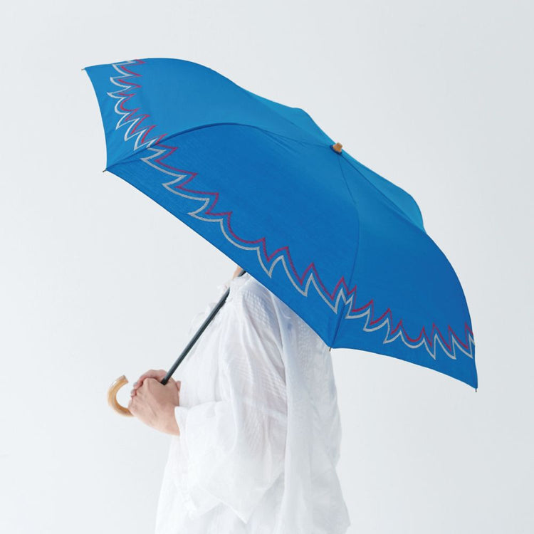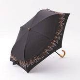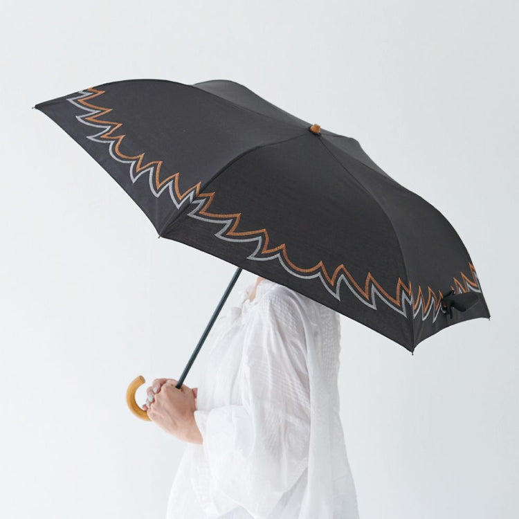 It is a folding umbrella that can be folded easily by simply collapsing the middle bar.