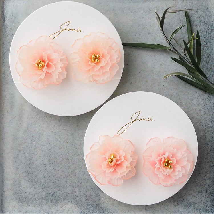 I created these earrings with the image of cherry blossoms that seem to bloom softly in the soft spring weather.