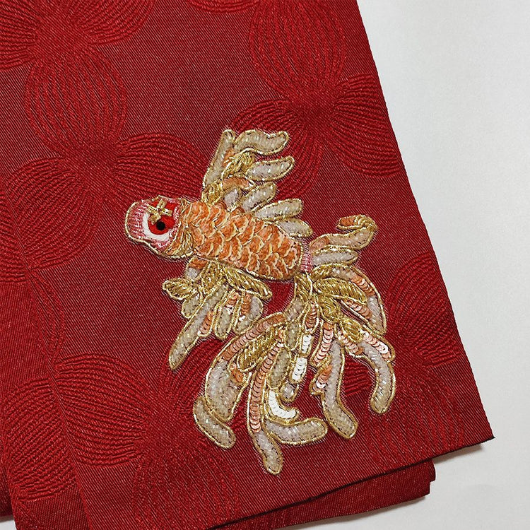 The base is a woven obi with a lovely Japanese pattern, suitable for yukata and casual kimonos.