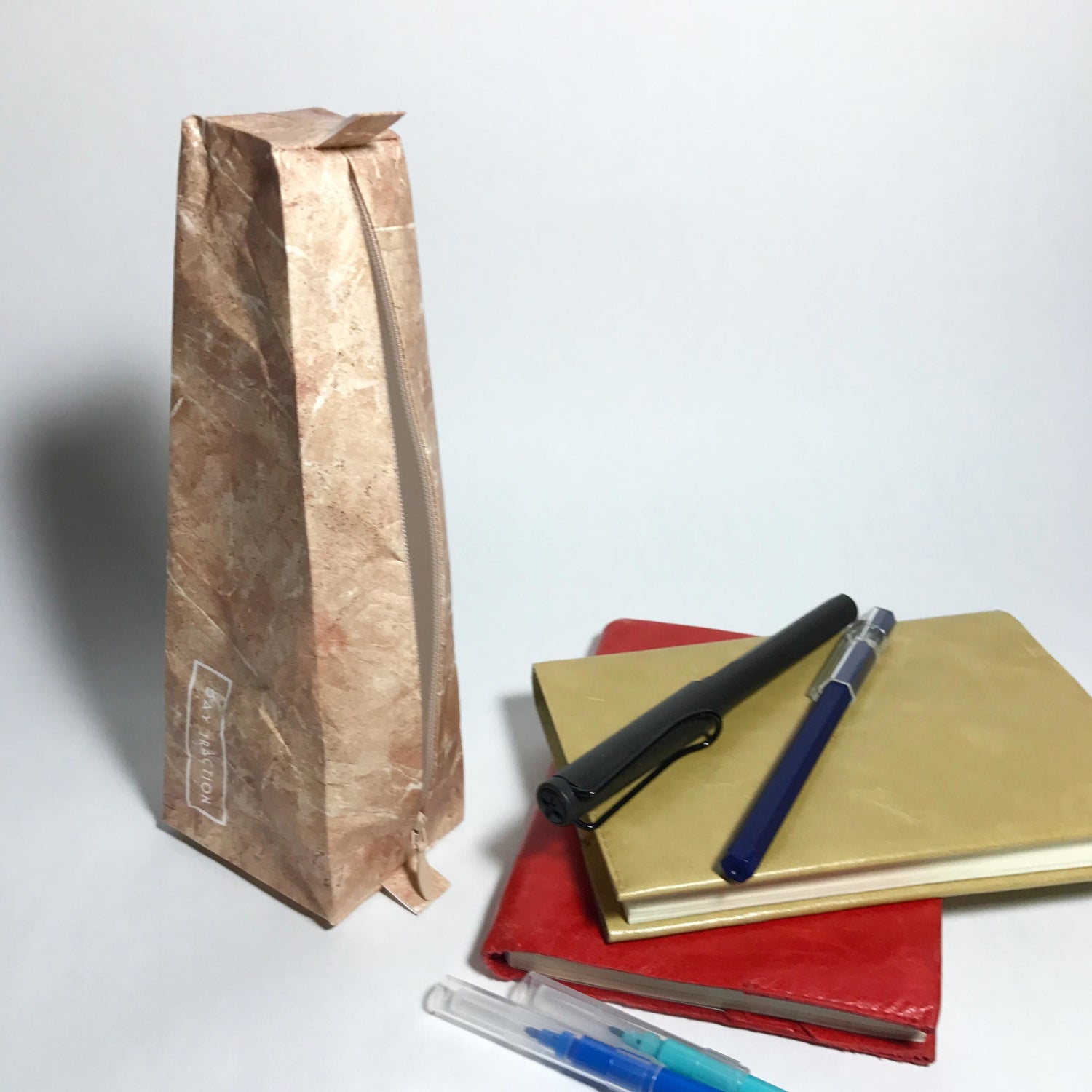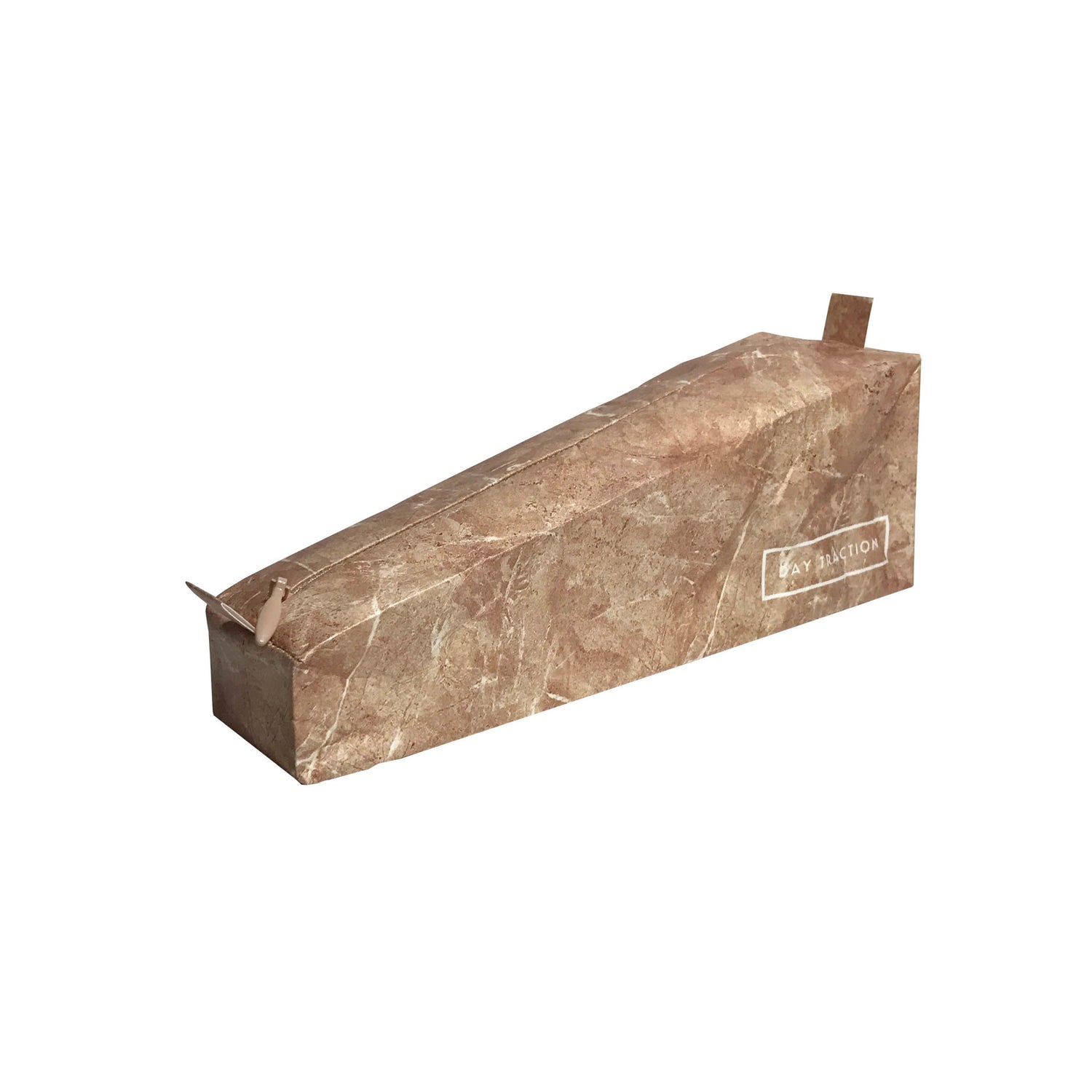 A pen case that looks like quarried stone.