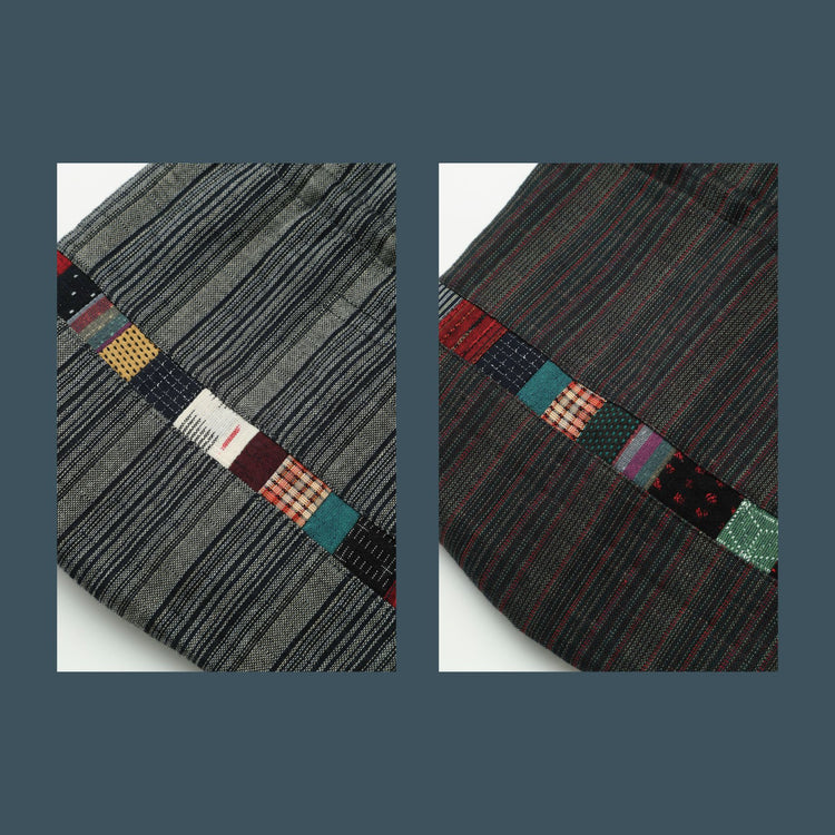 Chikugo woven drawstring bag. The patchwork of fabrics in various patterns is designed to evoke nostalgia. The size is perfect for daily use, useful for going out or as a sub-bag.