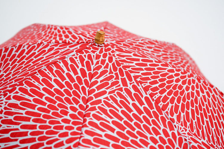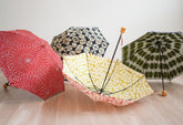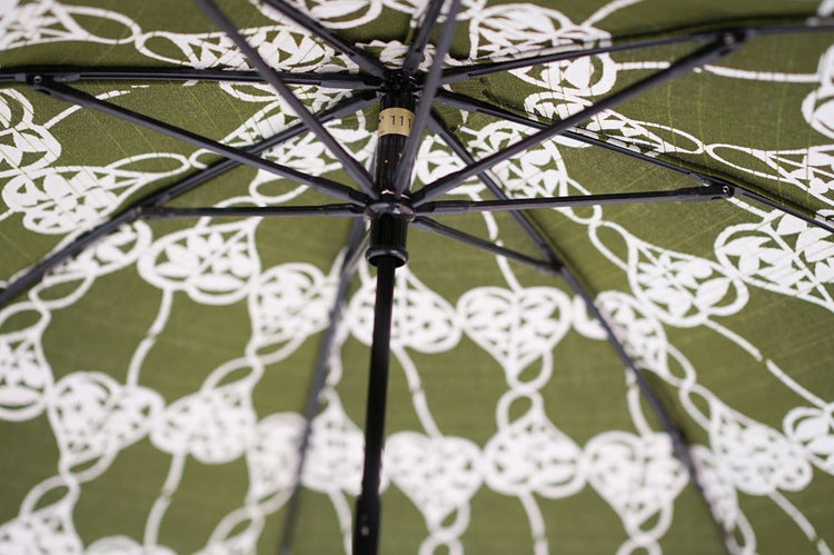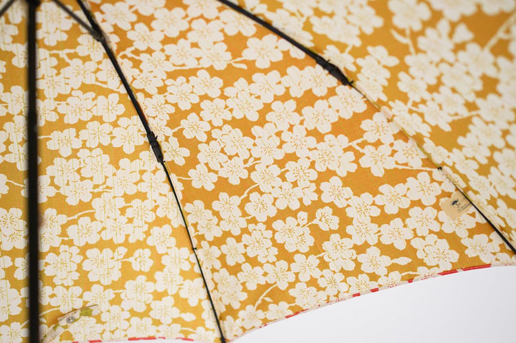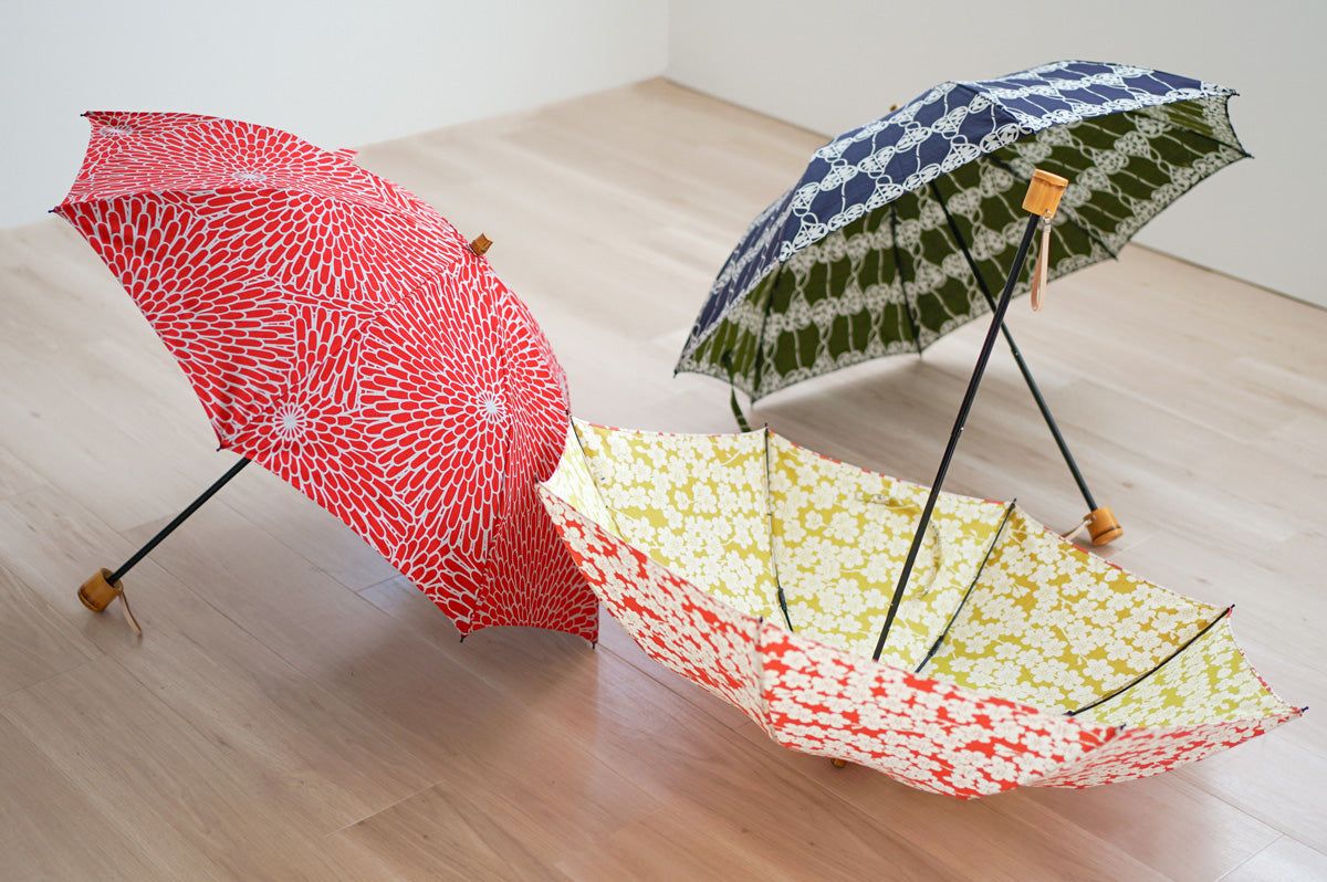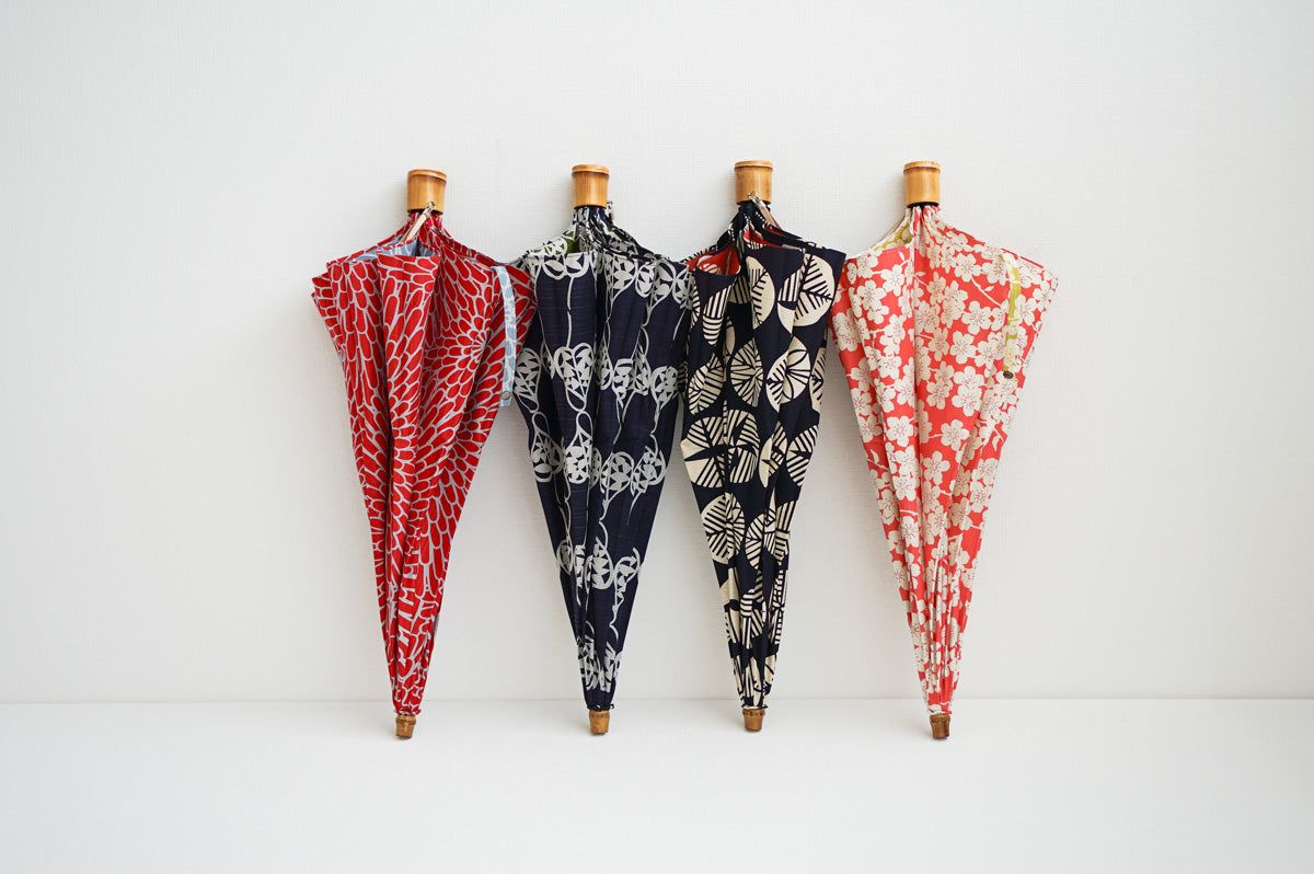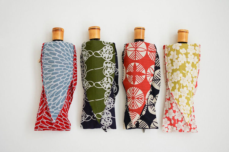 The 50 cm compact, double-folded bone makes it easy to carry around. The umbrella bag with furoshiki design can be tied to the handle of a bag, making it stylish and functional.