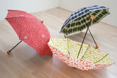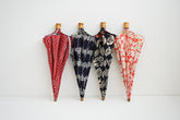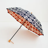 This is a folding umbrella for both sunny and rainy days, made of furoshiki fabric with Isago patterns expressed by stencil dyeing.