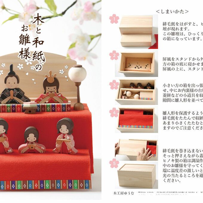 Both the box and the folding screen are made of Japanese cypress, so the fresh fragrance will refresh you like a forest bath, and the excellent humidity control will protect your dolls from mold and moisture.