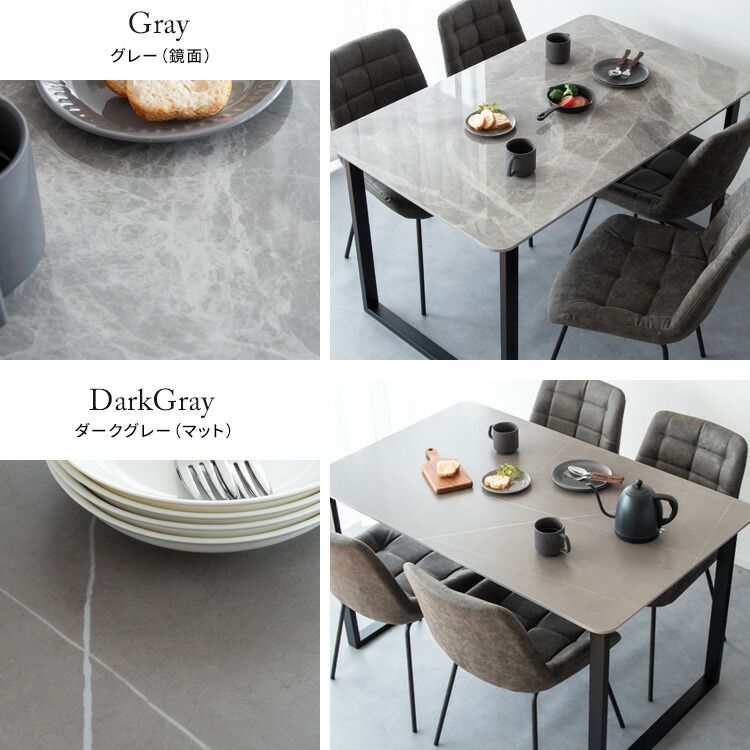 The table is available in three colors to choose from: mirror-finished white, gray, and matte dark gray, and the chairs are available in four colors: white and dark gray for the PU leather type, and ivory and light gray for the velvet type. Available as a 5-piece set including a table and 4 chairs, as a stand-alone table, or as 2 chairs.