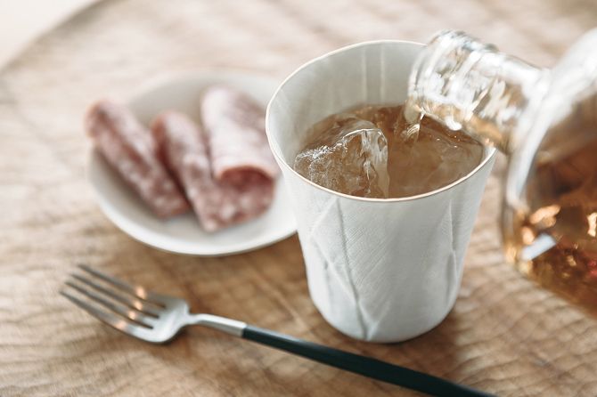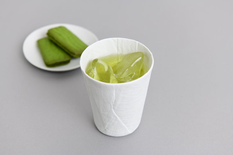 The lightness of the material and its gentle, cloth-like feel will make you forget that it is porcelain. It is so light and soft that you may forget that it is made of porcelain. The unique texture keeps the coolness of a chilled drink. It creates a moment when ordinary time feels a little bit special.