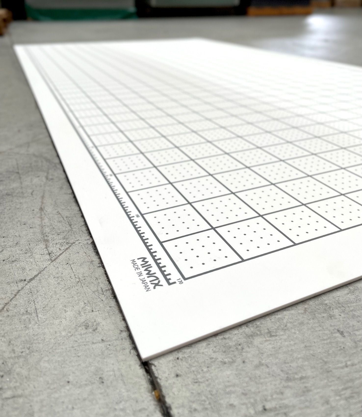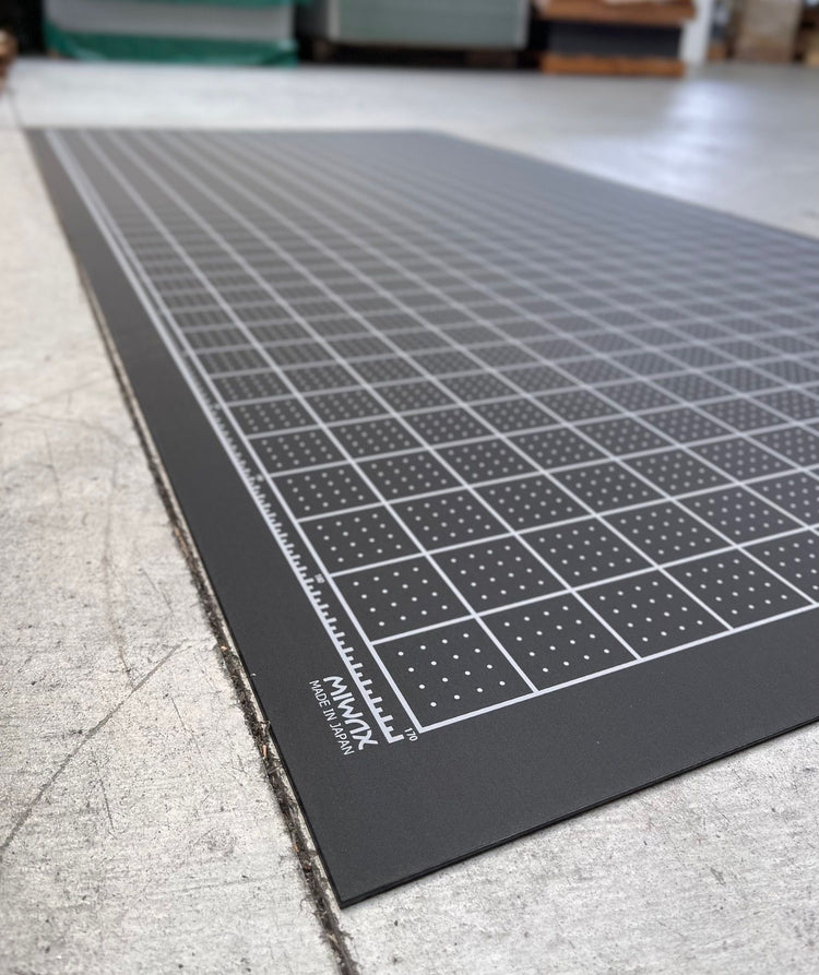 A very large [*sabloku] size cutting mat (cutter mat) that can be used on both sides of the front and back. The large size makes it suitable not only for professional use in factories and workshops, but also for all kinds of manufacturing, such as plastic model making, crafts, DIY, and dressmaking. Virgin olefin resin, carefully selected for viscosity, hardness, and shrinkage, is used on both the front and back. The cutter blade hits well and the blade lasts longer. The high shrinkage rate makes scars inconspicuous, and the silk-printed square and dot patterns on the surface hide scars. Virgin olefin resin is used for the material, making the cutter mat compliant with RoHS10, Europe's strict material regulations. A 5 cm square line is silk-printed on the surface. The reverse side is plain. This environmentally friendly cutting mat is made of a material that does not emit hydrogen chloride gas when incinerated at the time of disposal.