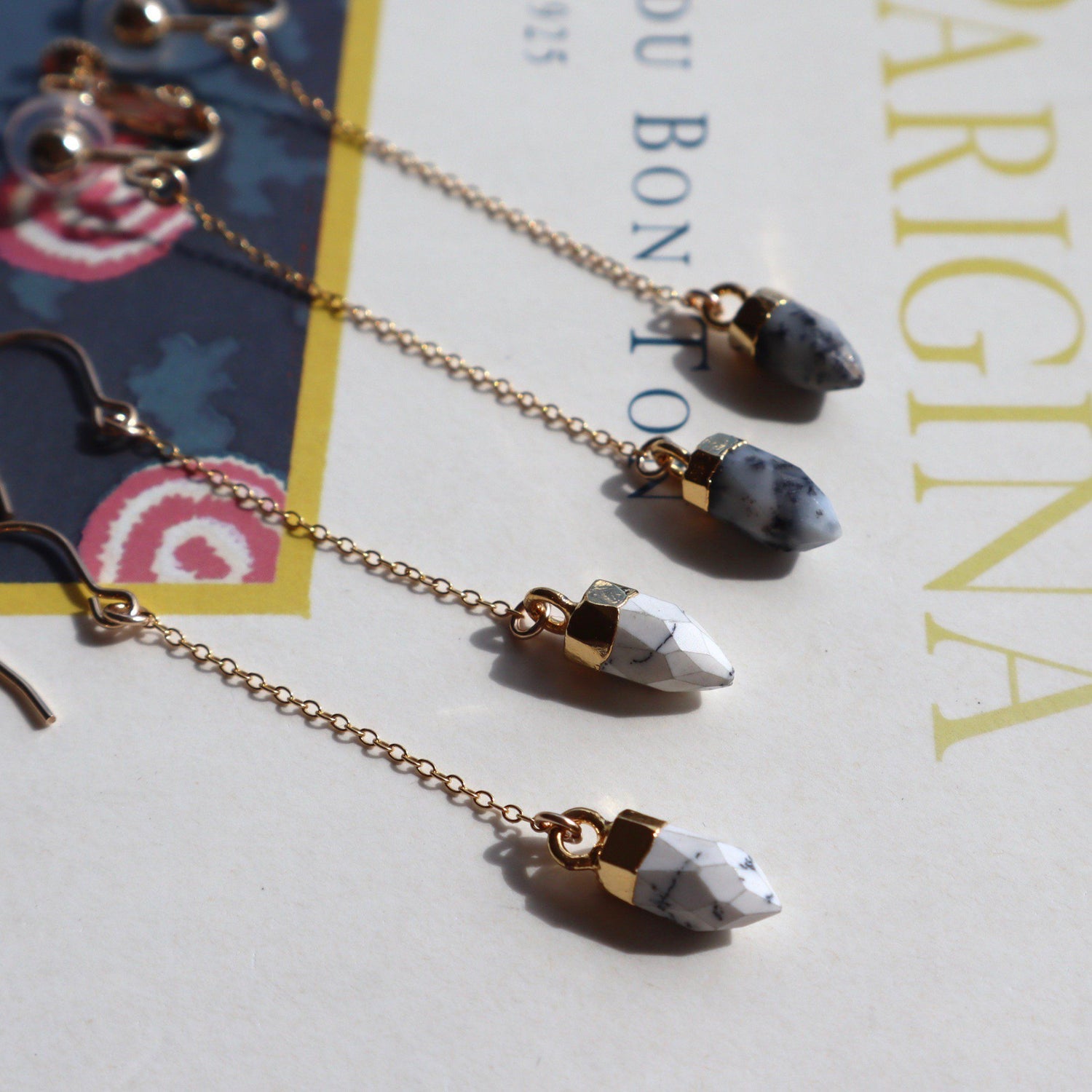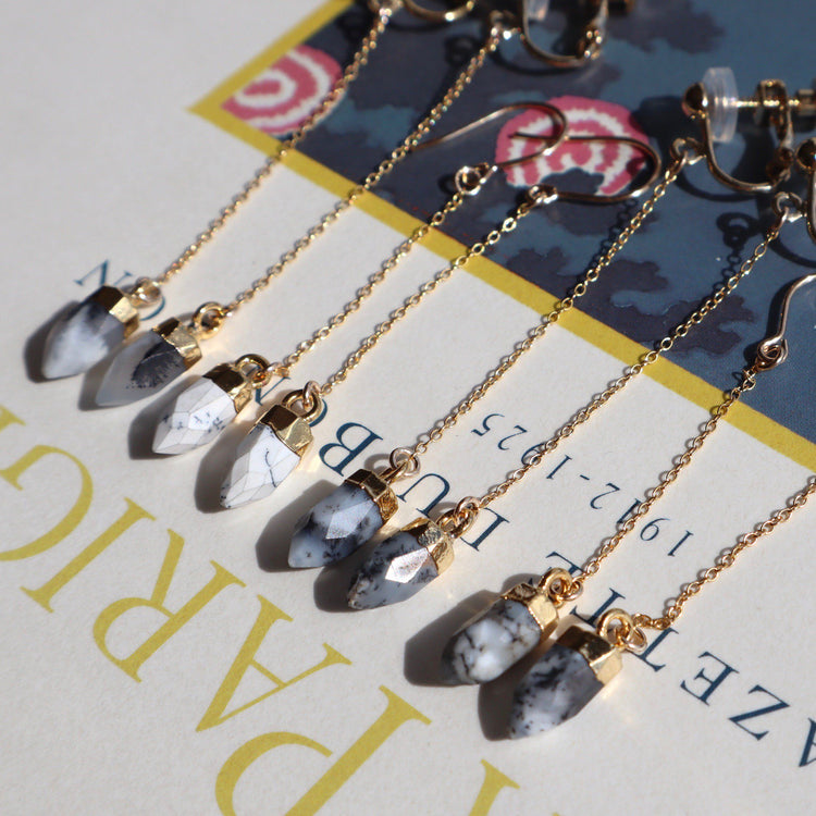 Material: 14KGF, GP on brass (Clip-on earrings hardware and stone frame), Turkish dendrite opal