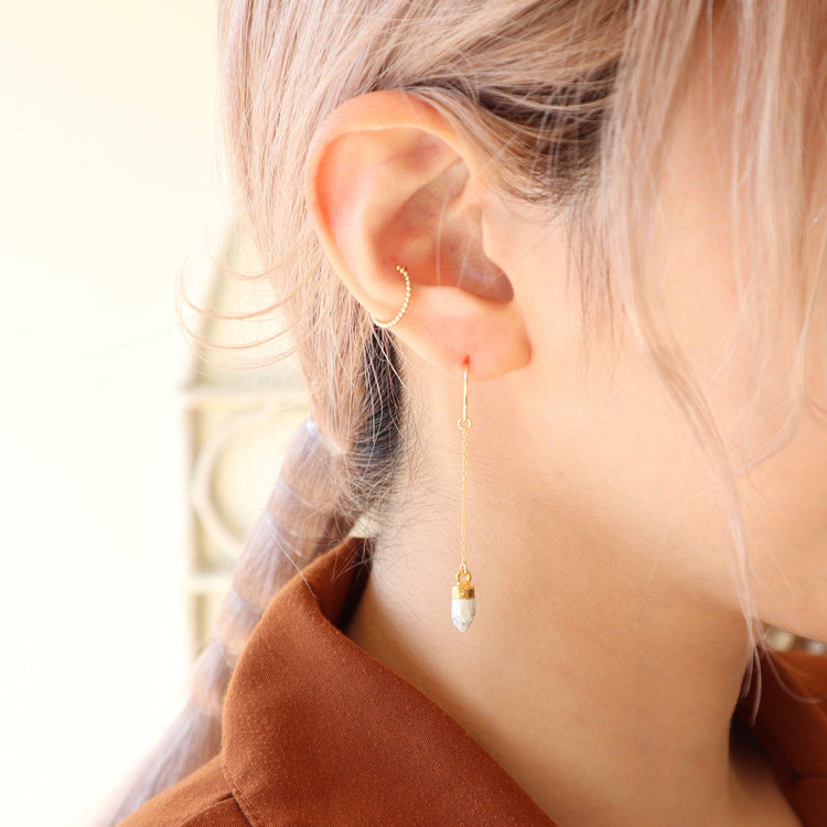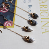 The combination of the natural charm with the rough gold and delicate chain gives a graceful and noble impression.