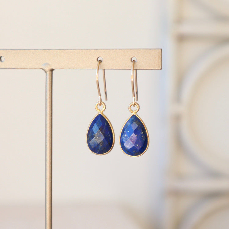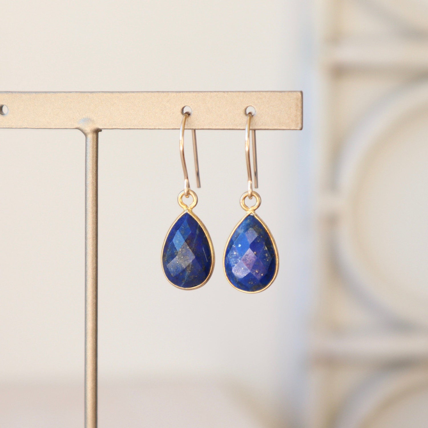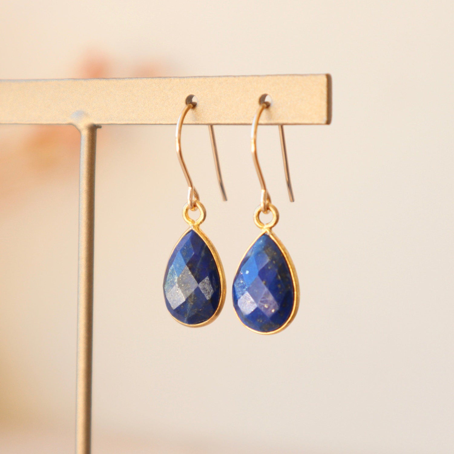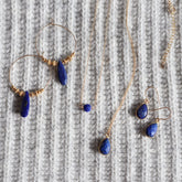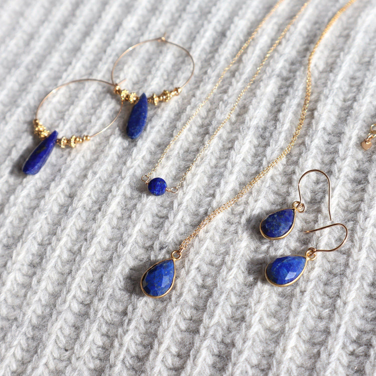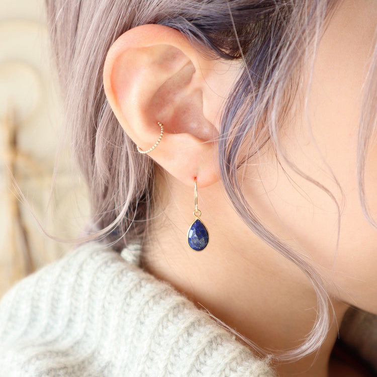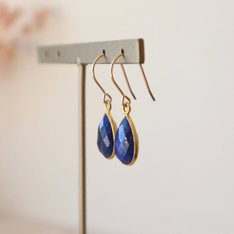 Beautiful gem-quality lapis lazuli. The sparkle of the cutting and the gold-colored frame are simple, but have a strong presence.