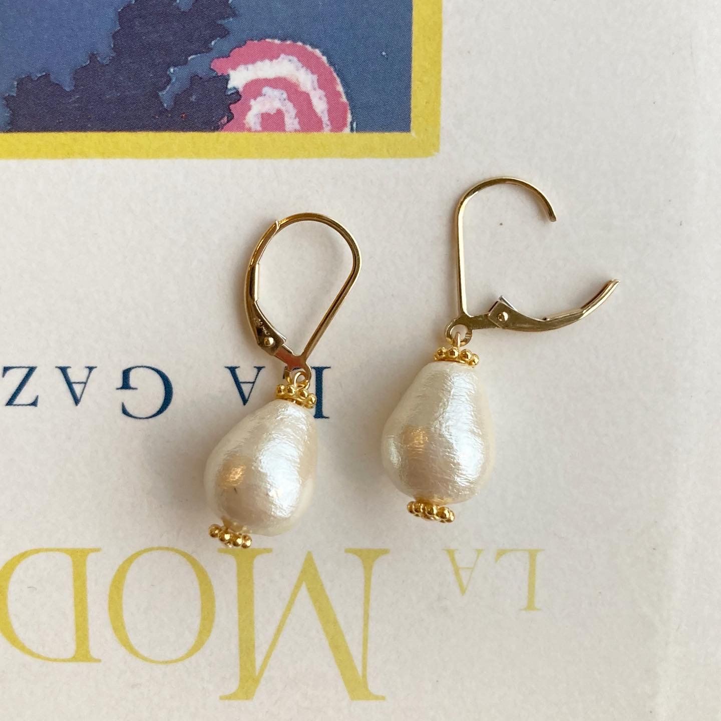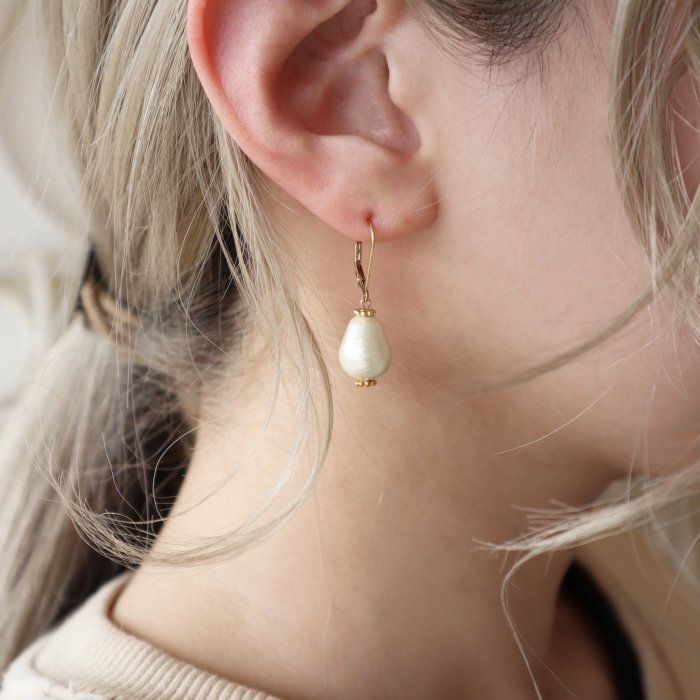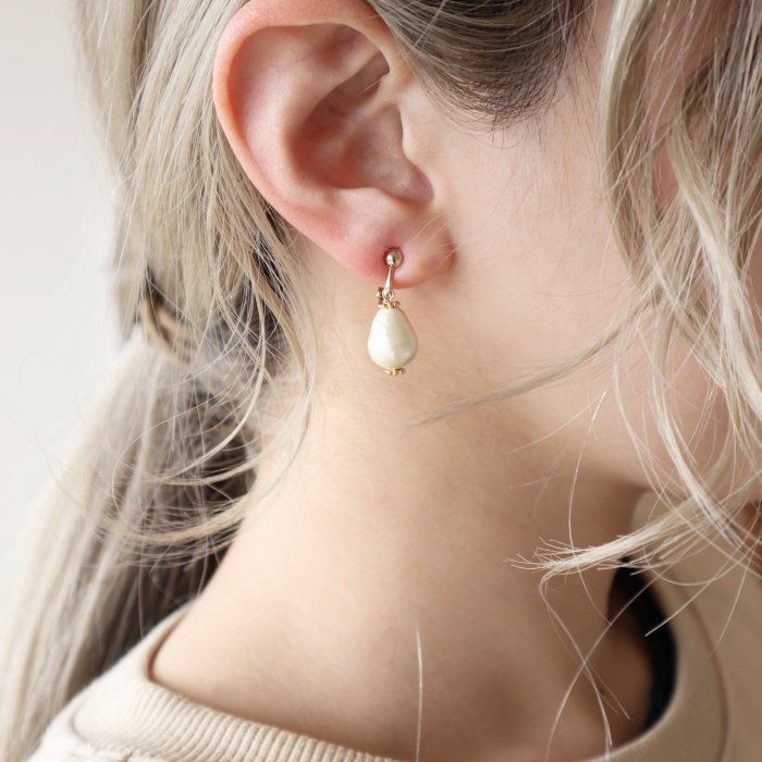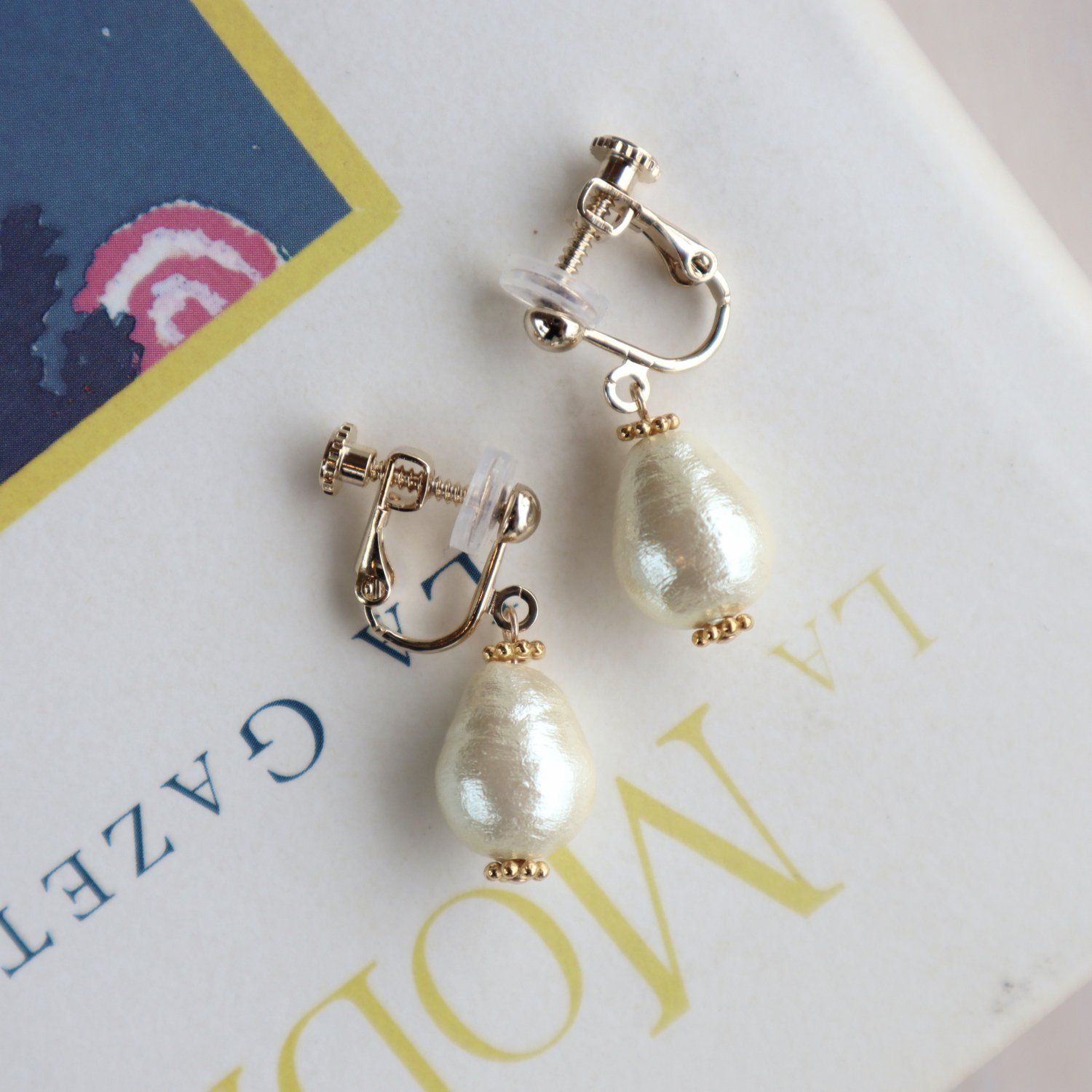 Material: Cotton pearls, 14KGF, GP on brass (beads) GP on brass (Clip-on earrings hardware)