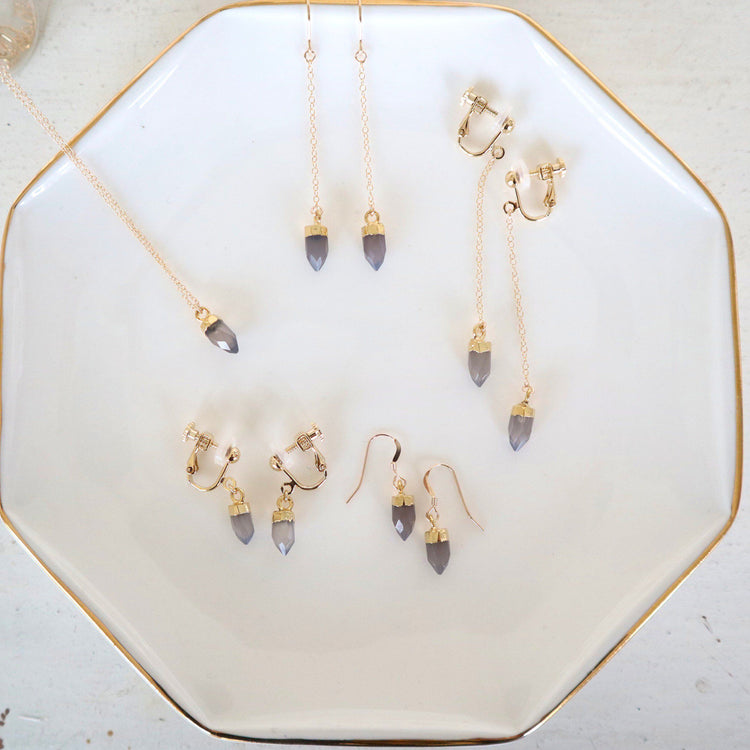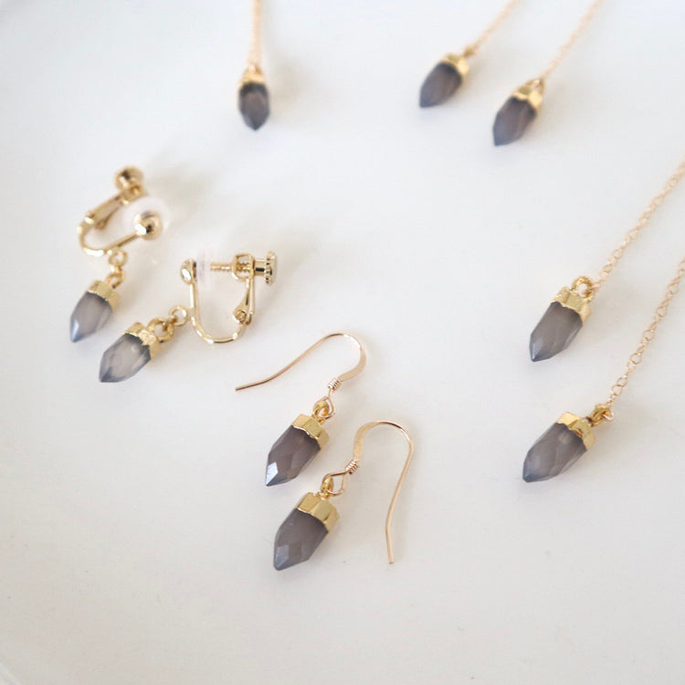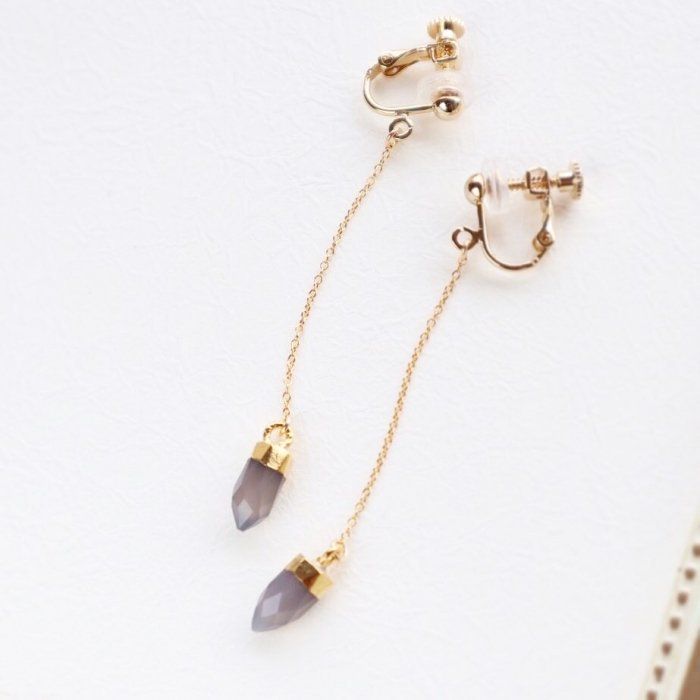 Material: 14KGF, Gray Onyx (frame part is GP), Brass and GP (Clip-on earrings hardware)