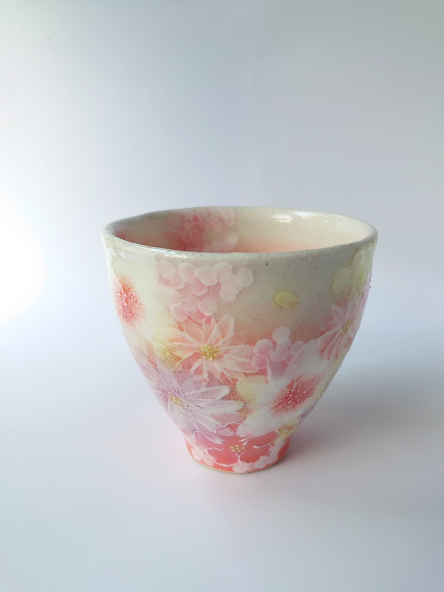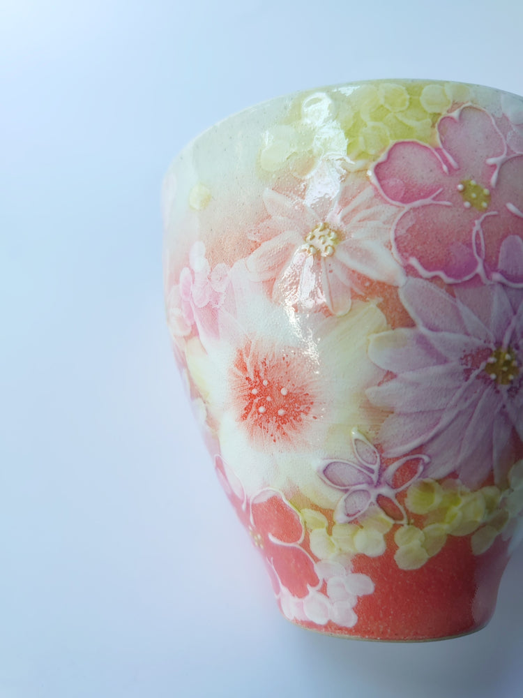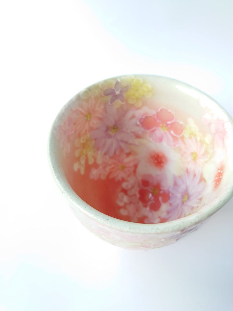 The gorgeous pink color of this Yuzuriha teacup makes it seem as if it is made by Yuzuriha,