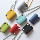 The felt pen holder W is designed to hold two pens and features two snap buttons. It can be used as a neck strap with the attached cord, or can be used without the cord, which opens up new ideas for usage. It is also functional as a phone rest (3rd photo) if you carry it with your phone. The felt material is soft, gentle and comfortable to use. Washable felt is used for long-lasting comfort. The new packaging (4th photo) is a great gift idea.