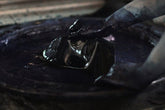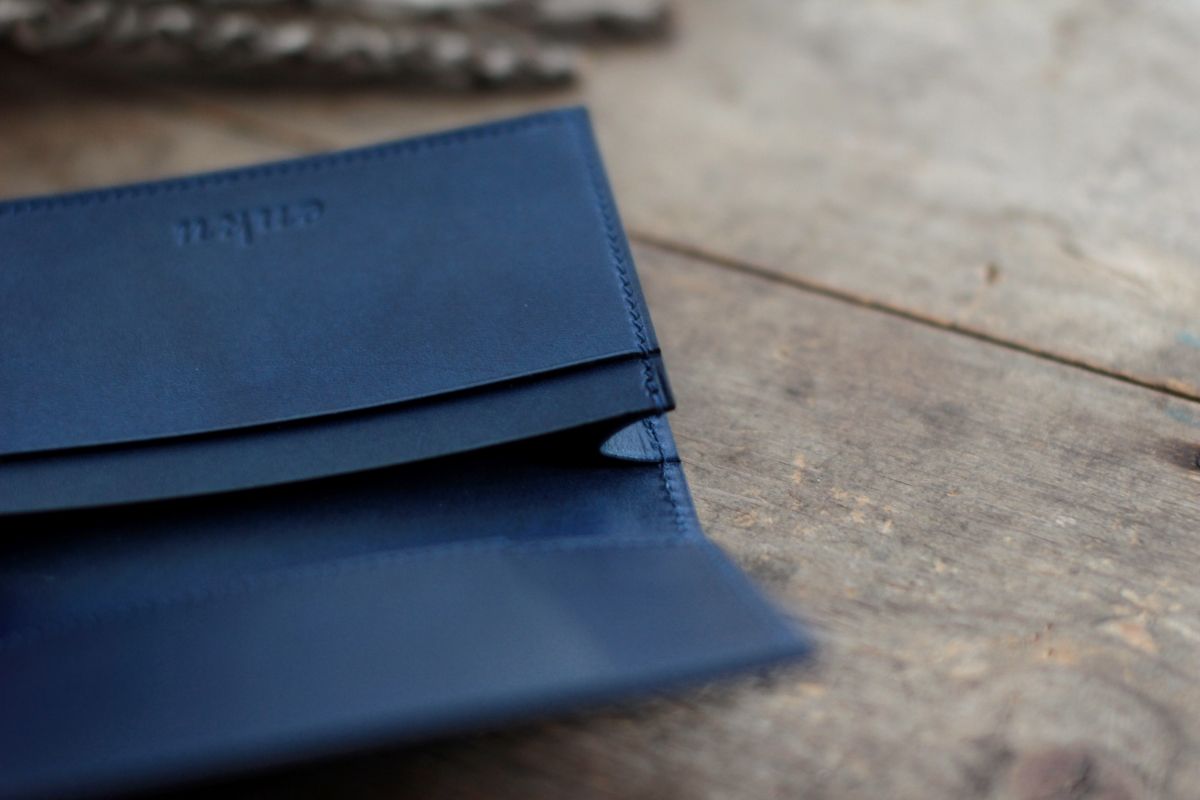 It is indigo-dyed leather that has been polished on the surface to give it an elegant luster and feel.