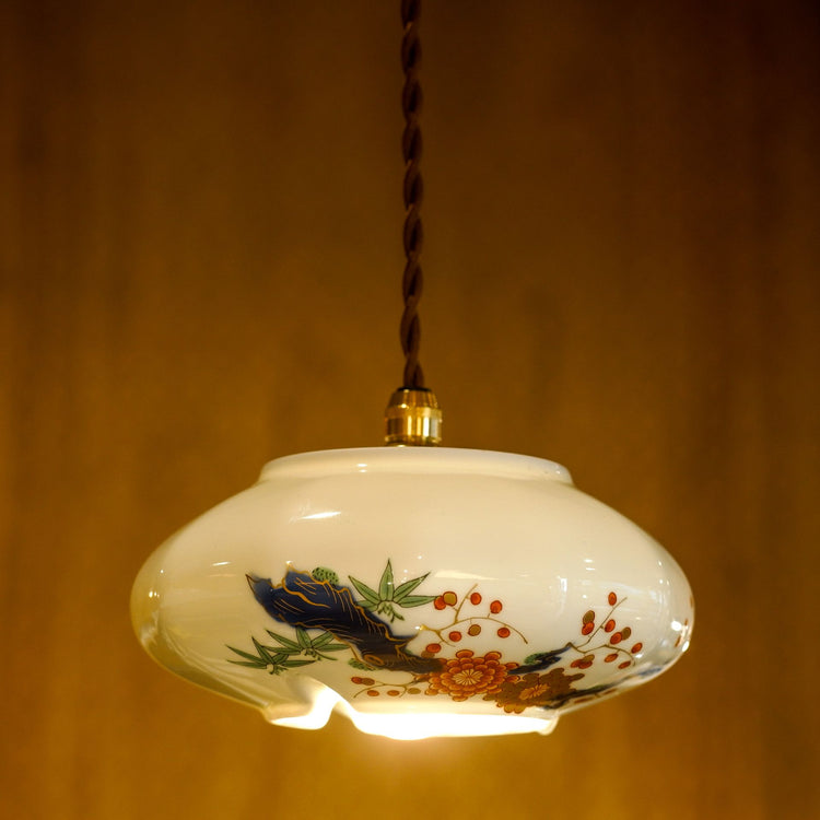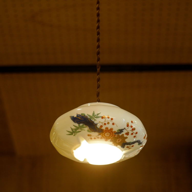 Aritayaki porcelain|Fukagawa Porcelain|Chrysanthemum, Plum, Bamboo|Pendant light