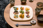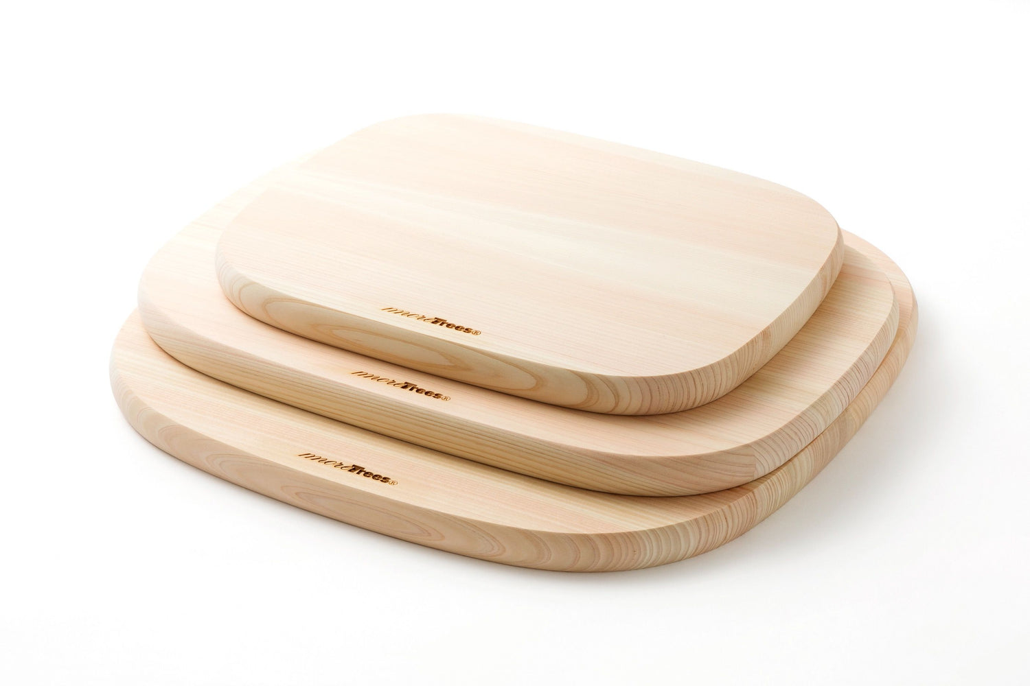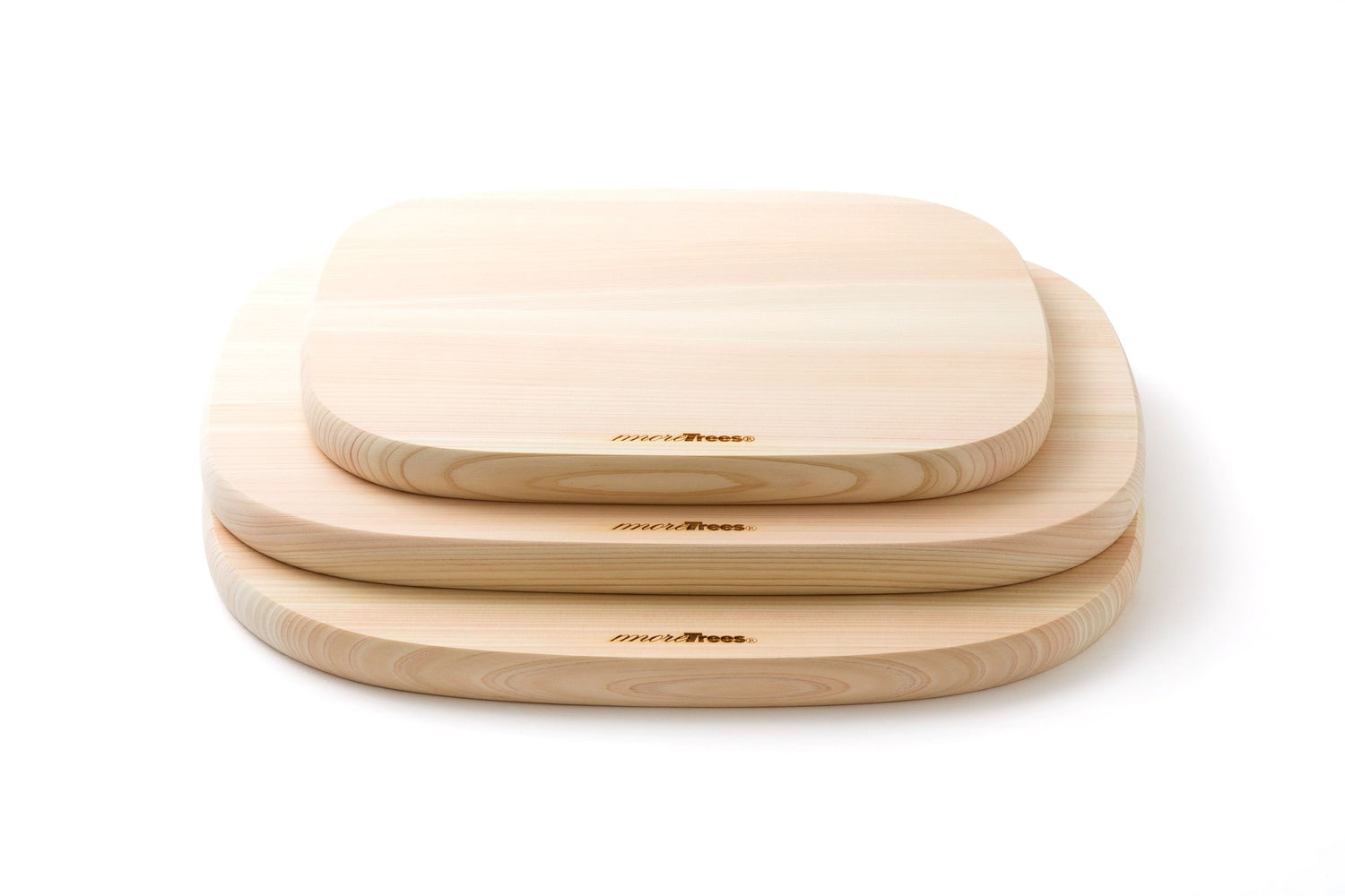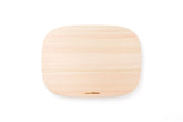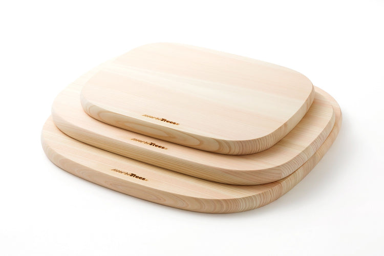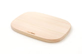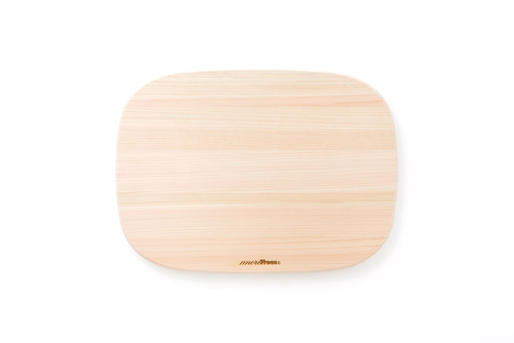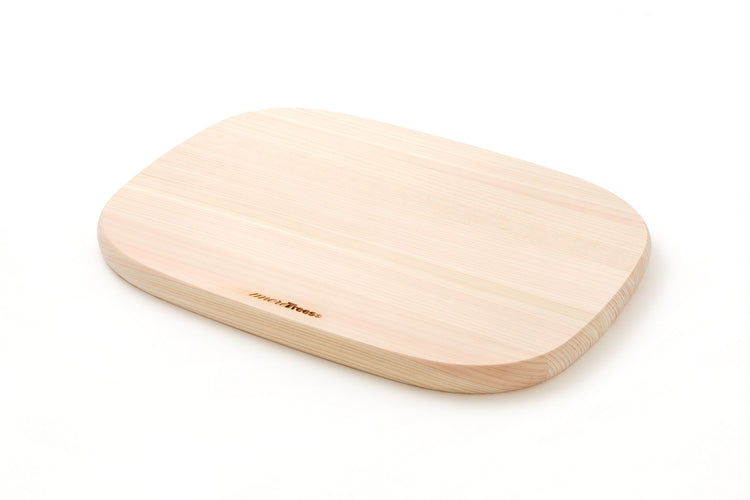 A cutting board made of beautiful Japanese cypress with soft rounded curves that are neither round nor square.