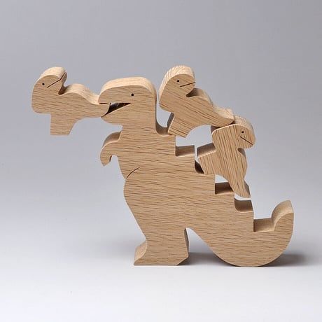 The smallest unit of Oguro Saburo's wooden pieces is a parent and child or a couple made of two pieces.