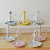 The body is made of heat-resistant glass, and the dish and stopper are made of Aritayaki porcelain.
