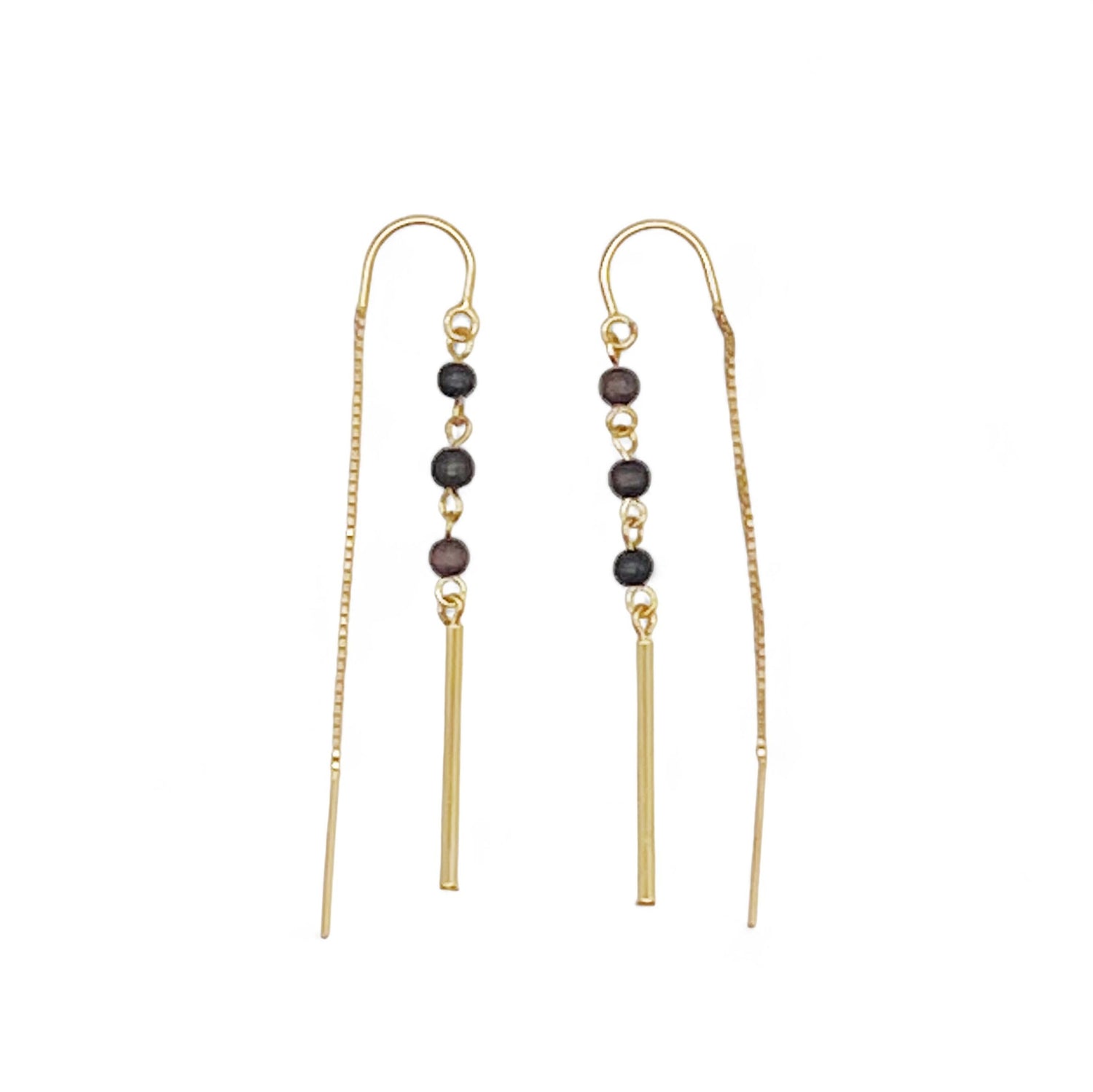 Long pierced earrings with a gentle glow, inspired by the sun shining through the trees, are now available, using K14GF metal fittings and creating an exquisite combination of fine ebony and chain. The chain swaying around your ear will give you a pleasant breeze and refresh your spirits.