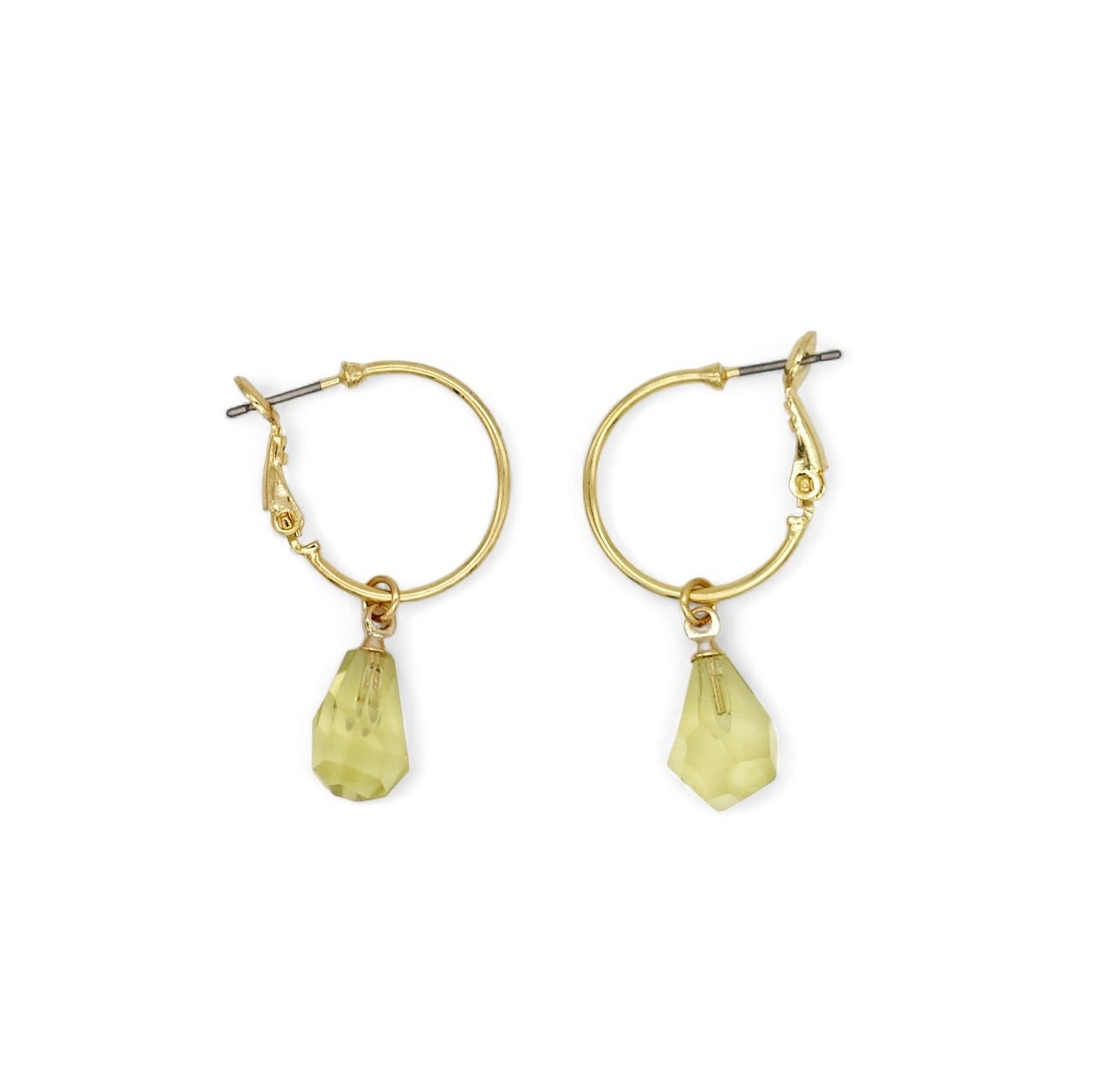 The hooped pierced earrings enhance the simple and casual impression, and the lemon quartz charms are designed to resemble buds.
