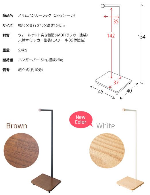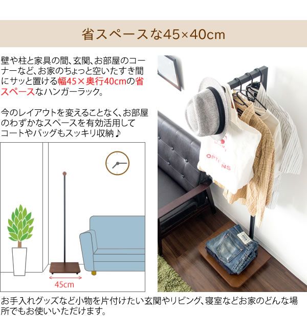 This compact 45cm wide x 40cm deep slim hanger rack [TORRE] can be placed in the corner of a room or in a crevice.