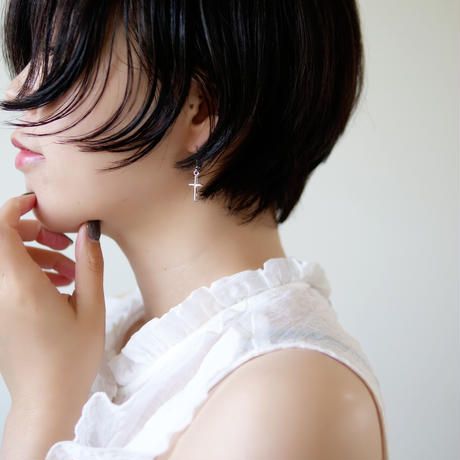 These French hook pierced earrings have a simple and elegant design with cross-shaped parts.