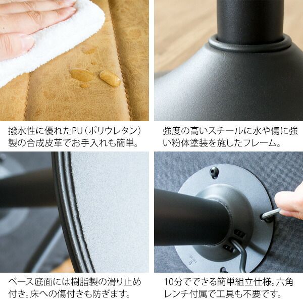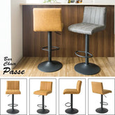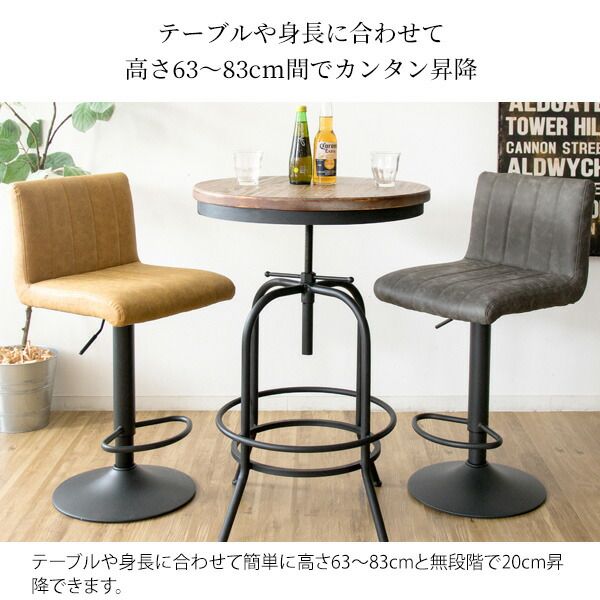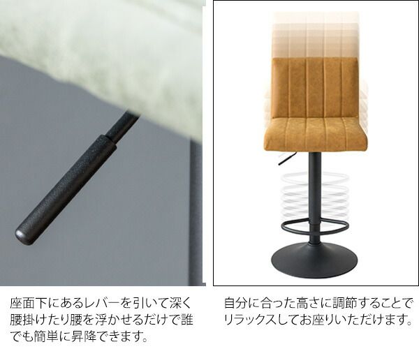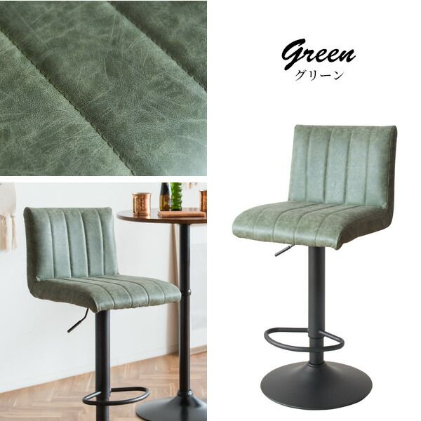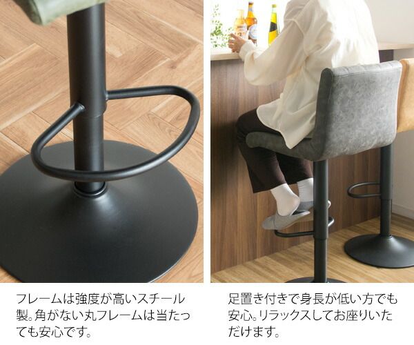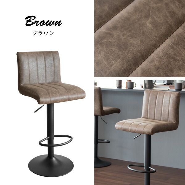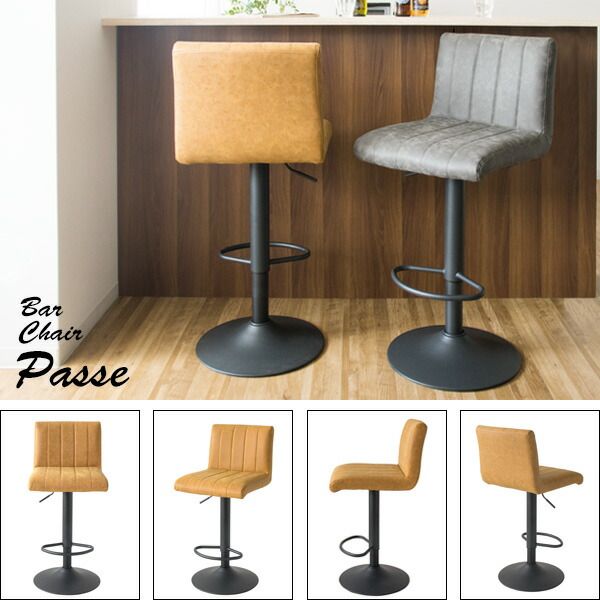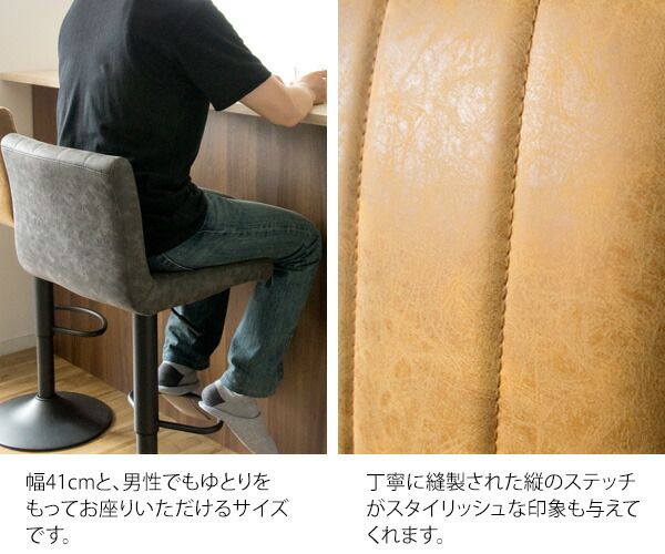 With its eye-catching leather seat with vertical stitching and vintage finish and chic sandy-grain frame, the bar chair [Passe] creates a retro atmosphere.