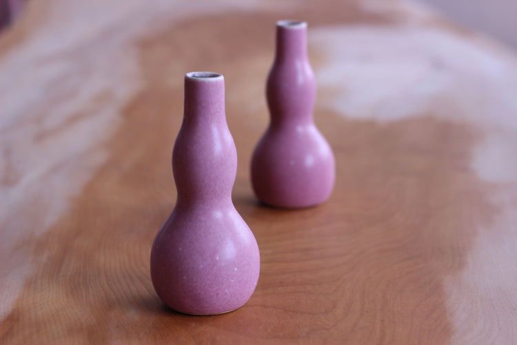 This is a lovely gourd-shaped vase. The pink glaze makes this item cute and attractive.