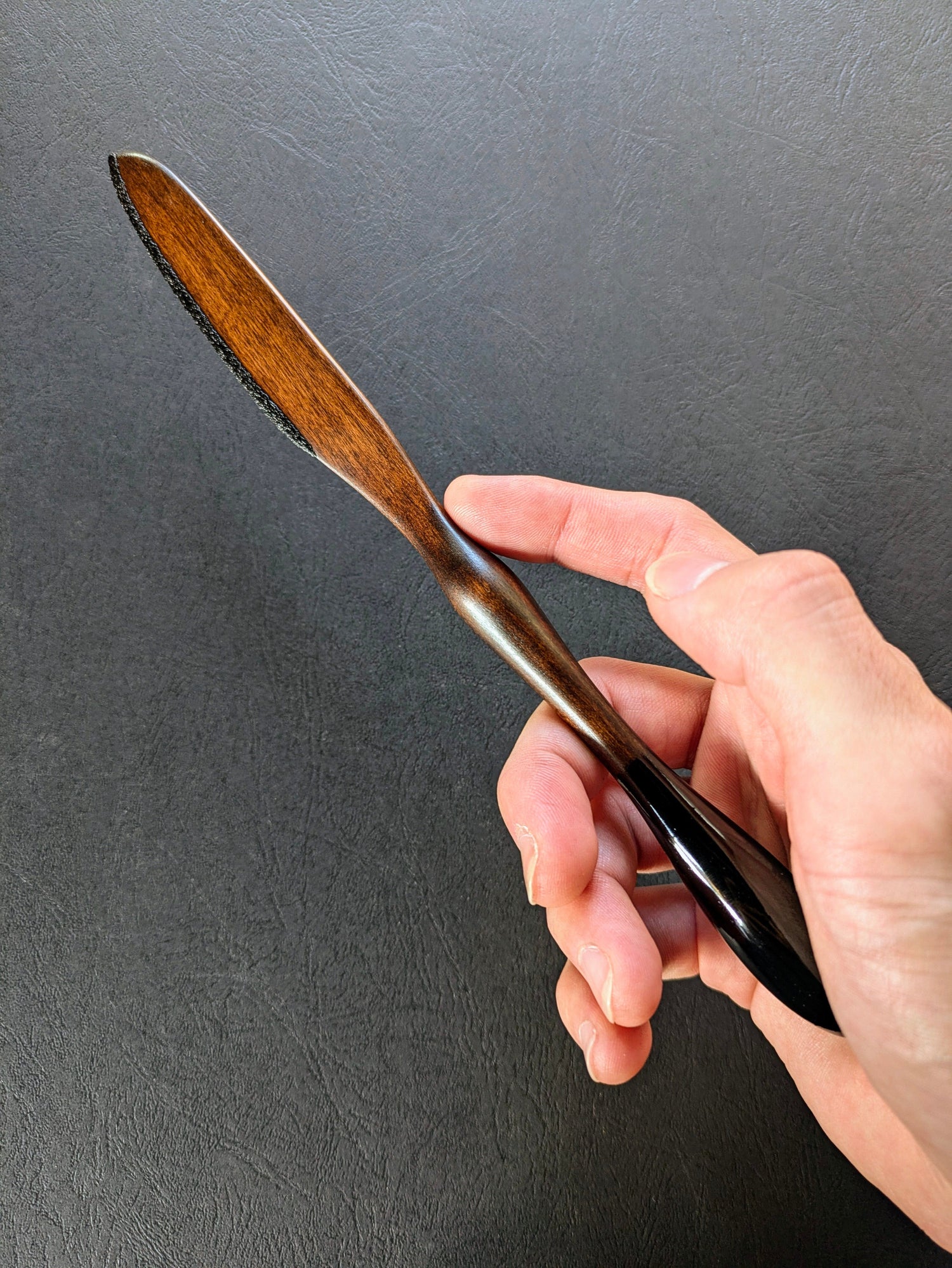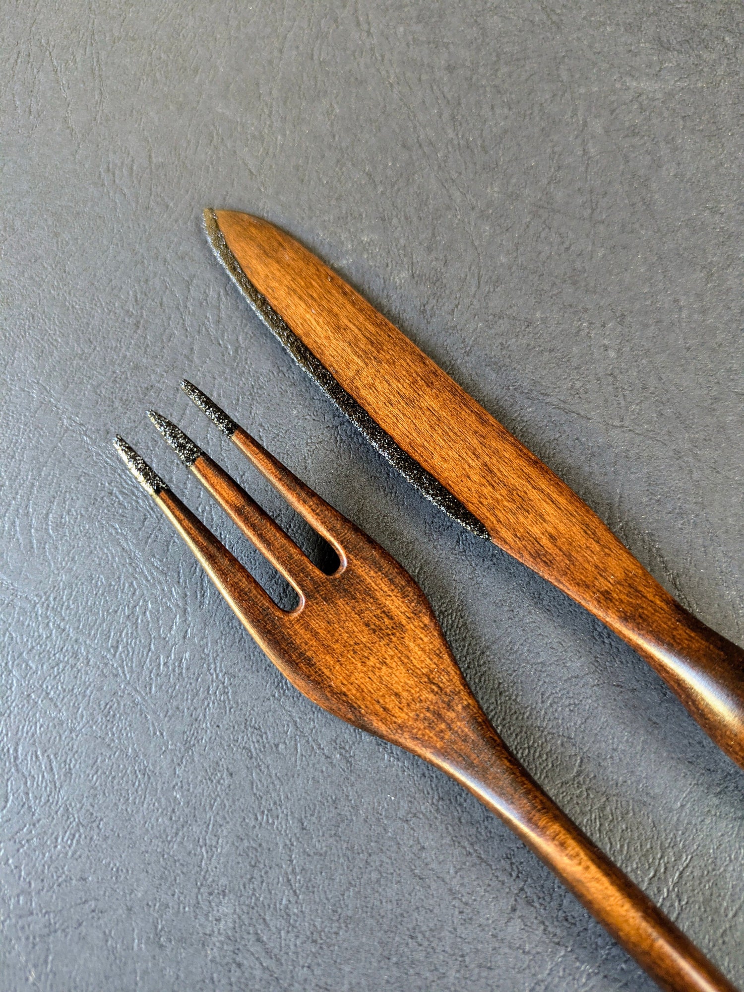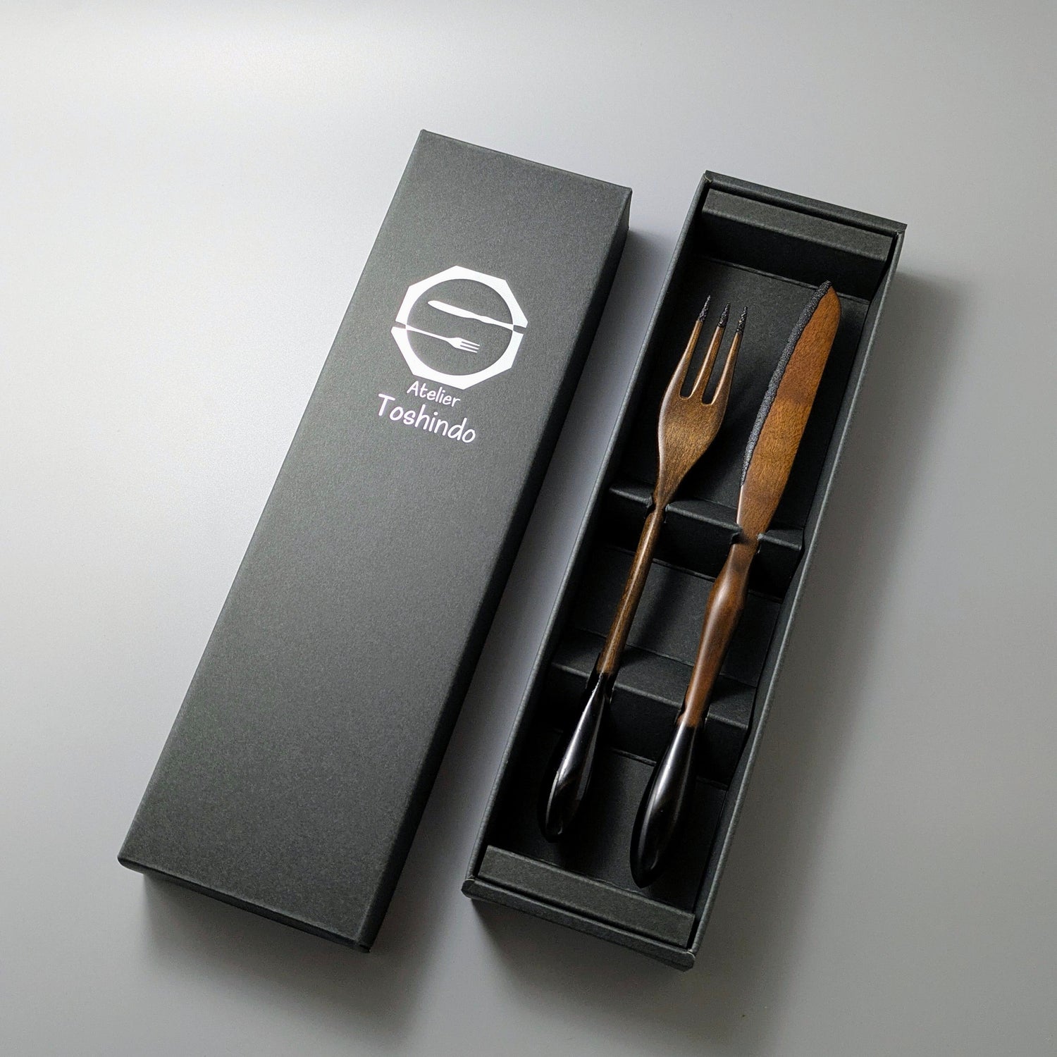 This wooden cutlery set is finished in black lacquer.