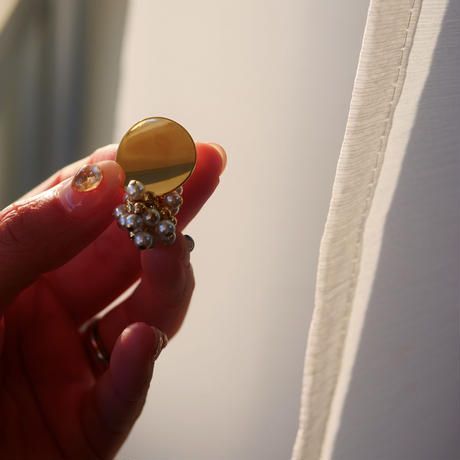 metal×pearl volume Pierced earrings/Clip-on earrings