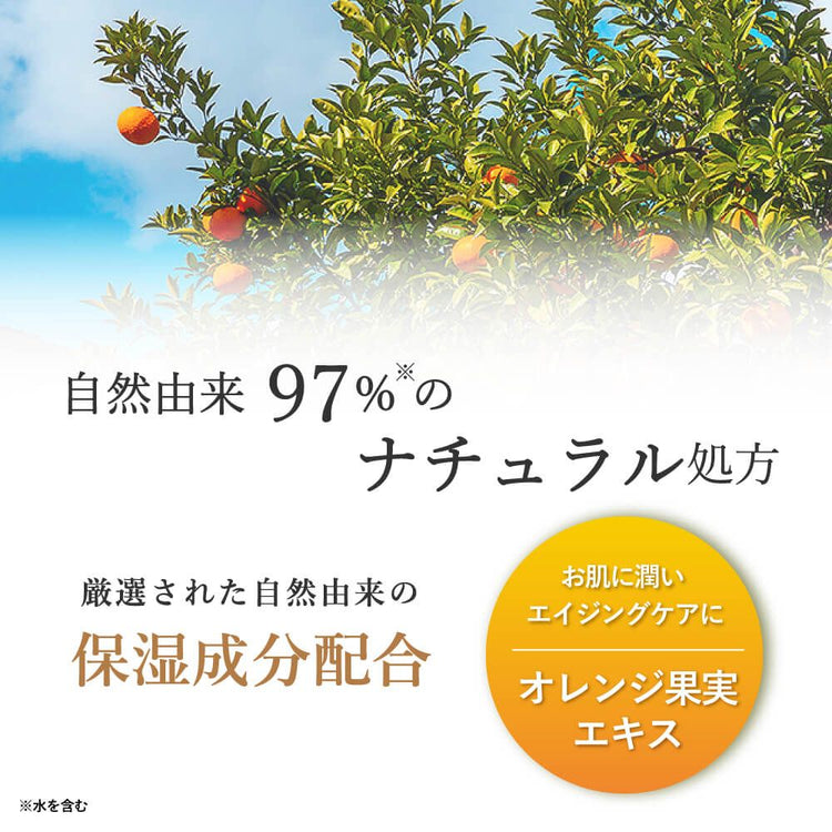 Water, castor oil, glycerin, cethanol, shea fat, (hydroxyethyl acrylate/ sodium acryloyldimethyltaurate) copolymer, orange fruit extract, iyokan peel oil*, olive fruit oil, propanediol, glyceryl stearate (SE), diisostearyl malate, Sorbitan isostearate, Polysorbate 60, propynyl iodide butylcarbamate, BG [* indicates essential oil extracted from plants].