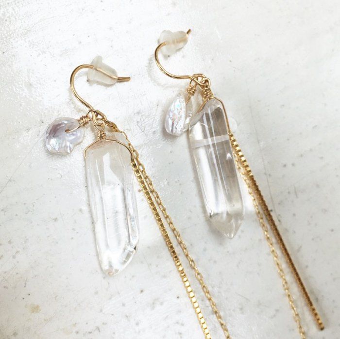 Material: 14KGF (Pierced earrings hardware), GP on brass (Clip-on earrings hardware), GP on alloy, crystal, freshwater keshi pearls