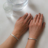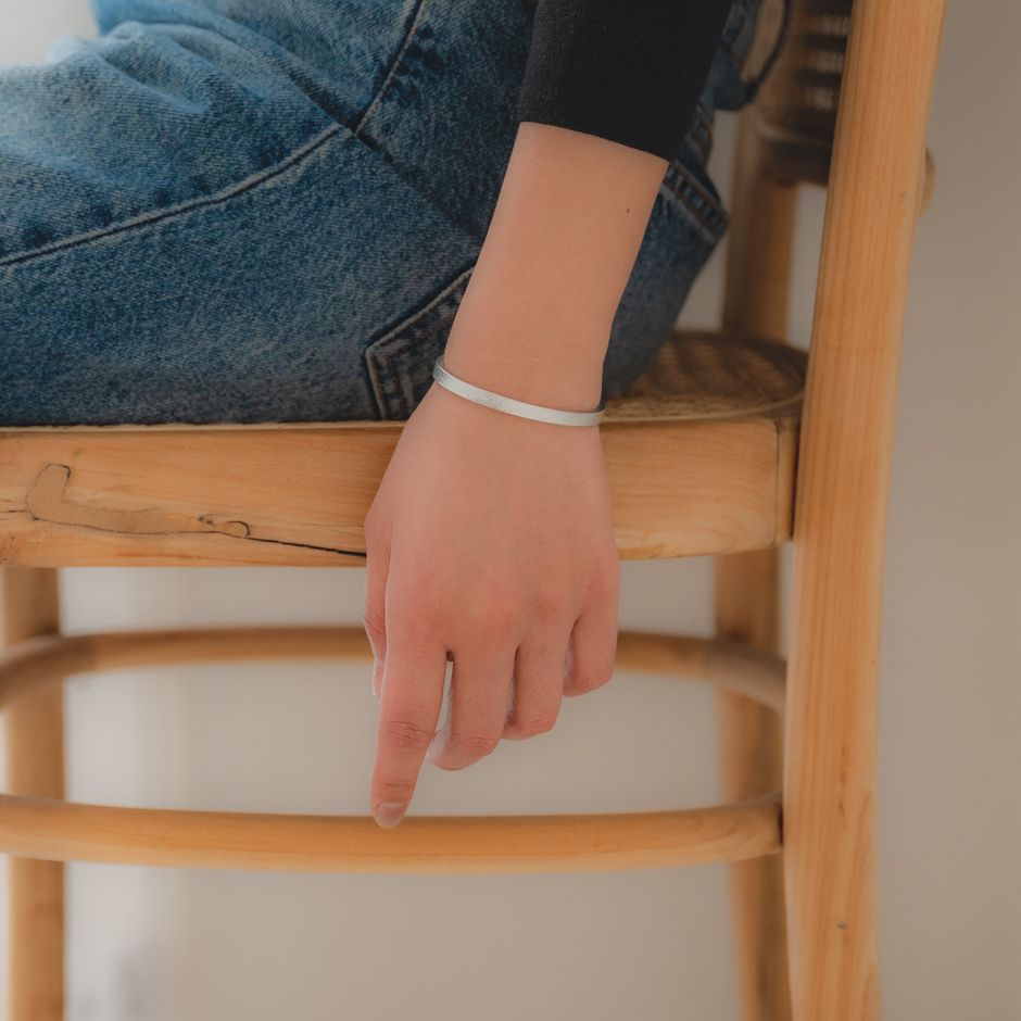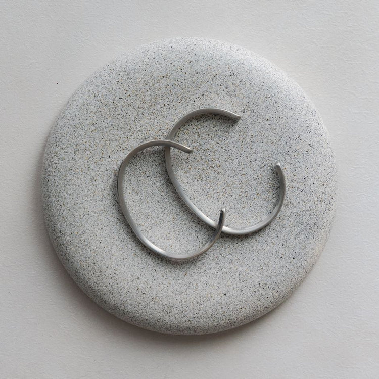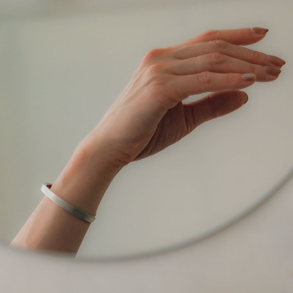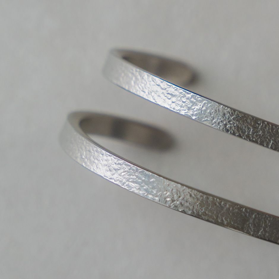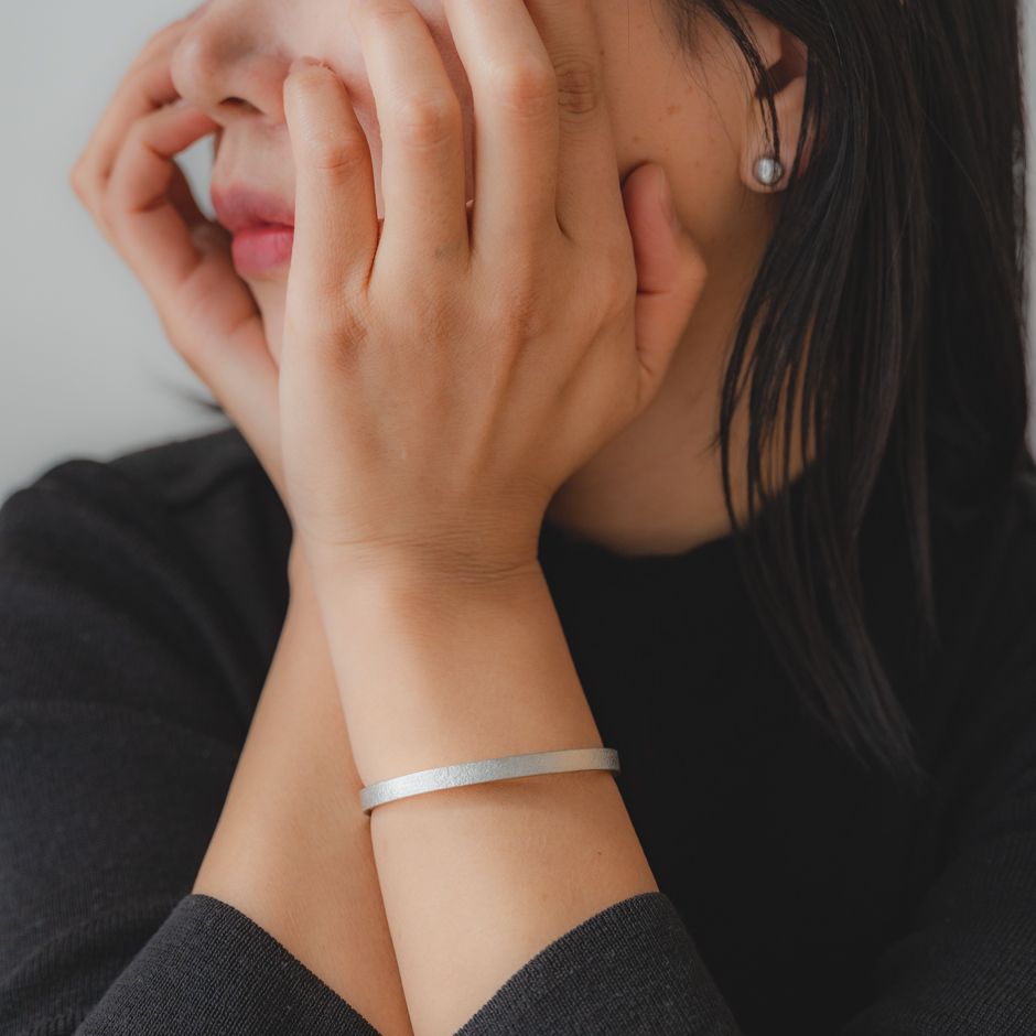While continuing a rare traditional craft, each piece is handcrafted by [MAKINAGI], who is also developing artwork as an artist. The soft surface texture symbolic of tin is a slightly subdued shining white silver. The color blends easily with the skin, making it suitable for elegant coordination.