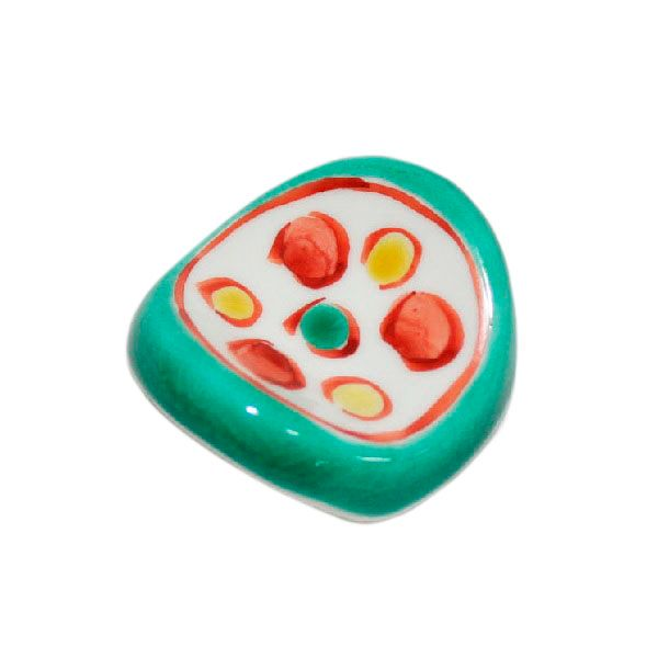 [Eisyou] Oval chopstick rest with green rolled polka dot design